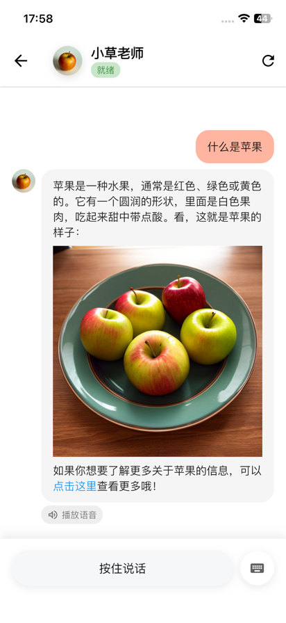 宝宝依依呀呀开始要说话了,该怎么教宝宝说话呢?早期的语言启蒙十分重要,婴幼儿的语言表达能力和理解能力直接影响其他能力的发展。多说,多听,随时随地和宝宝交流,说简单的词语或短句是很重要的一环。 软件通过不同情景分类,让宝宝扩展词汇和认识生活,从各方面锻炼孩子的语言逻辑思维。比起传统书籍,软件设有语音及互动,让孩子更轻松的锻炼语言组织和表达能力,为孩子未来打好基础。 【产品特色】 ●普通话,英语,粤语发音。 ●内容分类全面,让宝宝多方位接触声音和语言的乐趣: “咿咿呀呀”:语言启蒙初体验; “听声认物”:认识生活中各种声音; “生活能手”:刷牙洗手等以及对应的情景语言; “美味厨房”:食物词组大汇集; “情景沟通”:基础礼貌用语; “缤纷色彩”:认识颜色; “趣味美食”:认识常见食物。 ●操作简单, 色彩鲜艳, 幼小的宝宝也能自主认读和辨识。 【联系我们】 网站:http://www.iappsteam.com E-mail: support@iappsteam.com