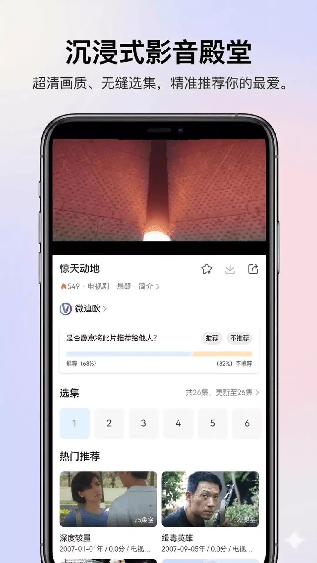 亿次下载,百万用户,八年选择! 追剧看片的快乐,一半在原片,一半在影视大全! 你是不是缺少一个工具,快速了解全网热播待映的电视剧、电影、综艺 你是不是在剧荒片荒时,希望有app帮你在选择时提供帮助,让你丝滑找到一部好内容 你是不是在看完某个内容后,想要推荐或吐槽,却发现身边缺少这样的圈子 我们正在努力打造这样一个影视综爱好者的灵魂聚集地。 在这里,能解决你看什么、这部内容好不好看、如何找到同好等多样痛点。 在这里,爱追剧,爱看综艺,身为影迷都能够找到同类, 如果你是个爱分享爱表达的E人,我们将是一个非常适合你畅所欲言的平台, 如果你不混饭圈、单纯热爱作品演员明星,我们精心准备了内容,想成为你作为i人的藏身处。 无论你是古偶爱好者、大爱都市言情、悬疑发烧友、灵异恐怖迷、美剧控、韩剧迷、日剧Fan…都能在这找到共鸣! 问题反馈请关注影视大全公众号:yingshidaquan003