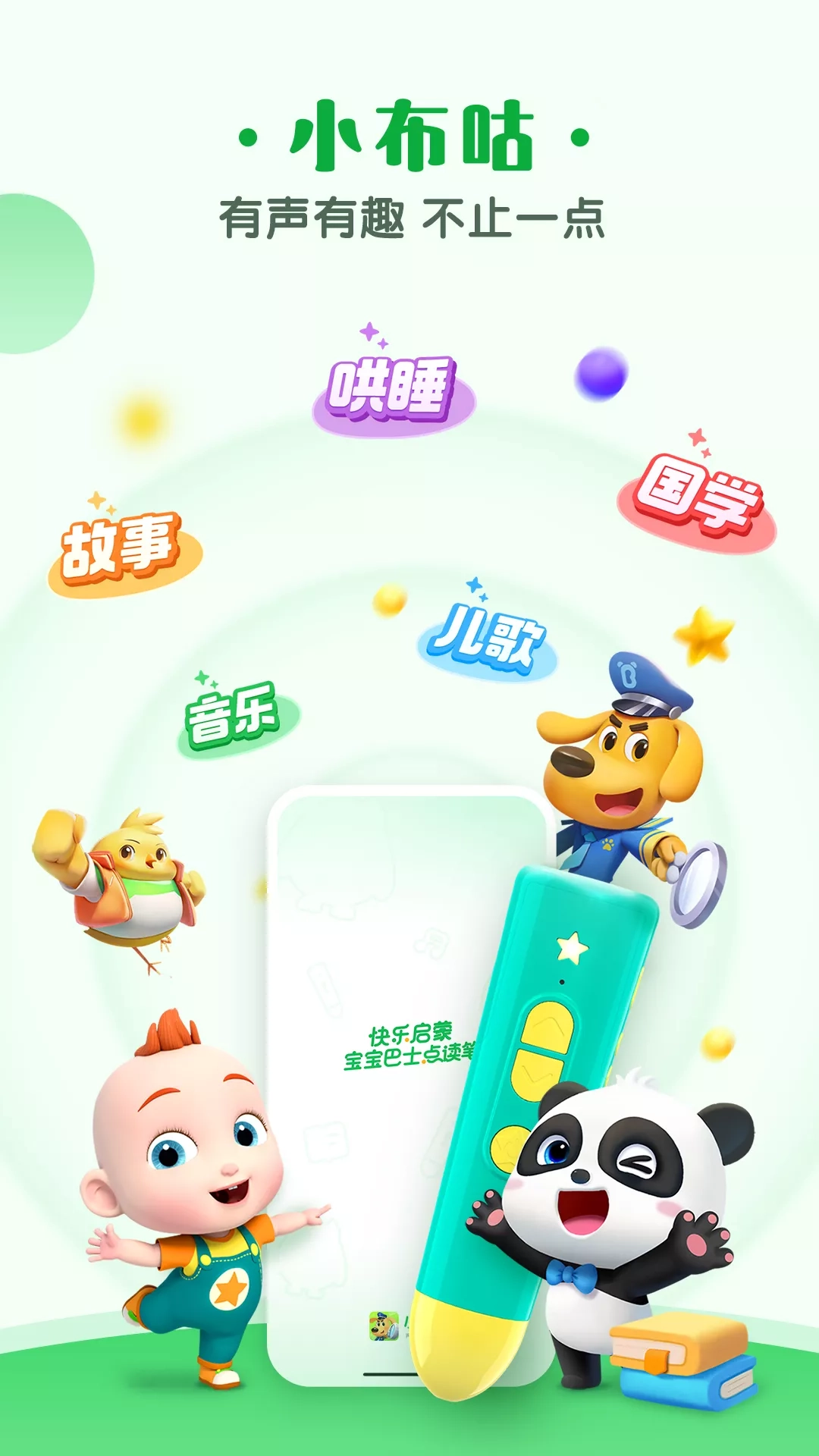 【小布咕】 抓住语言关键期,培养孩子流利表达 由宝宝巴士官方出品,用哄睡安抚、经典音乐等优质音频,配合智能硬件,全场景满足亲子家庭的声音需求。 【“好听”成长体系】 遵循儿童语言发展规律,为儿童提供合适的音频内容。让孩子在丰富词汇的自然语言环境中,掌握知识,流利表达。 1、语言认知关键期 培养的重点在于“丰富听觉世界,奠定语言基础” 以音乐和童谣为主,选编「律动音乐」「亲子哄睡」「语言启蒙」3大主题,用富有音律的旋律,带儿童认知简单事物。 2、语言表达爆发期 培养的重点在于“培养生活习惯与社交礼仪” 以儿歌和故事为主,选编「国学诗词」「生活认知」「习惯养成」「安全意识」4大主题,拓展儿童的表达能力。 3、语言社交表达期 培养的重点在于“促进思维发展,提高社交能力” 以故事和小知识为主,选编「安全剧场」「爆笑语文」「科学探索」3大主题,锻炼儿童的逻辑思维能力。 【优质的音频启蒙内容】 ·听音乐,发展儿童听觉,增强音乐兴趣 ·听儿歌,认知日常事物,培养生活习惯 ·记忆听,诵读古诗,韵律记忆,增强孩子的记忆力 ·听故事,增强逻辑思维,培养社交能力 ·听小知识,记忆和积累知识点,拓宽认知 ·听解说,增强语言理解,感受音乐之美 【账户删除功能说明】 删除账户路径:我的-设备-注销账号; 账号注销后,账户及账户下的所有个人数据都将删除。 宝宝巴士(BabyBus)是专注打造儿童启蒙数字产品的原创品牌,累计服务全球7亿家庭用户。宝宝巴士秉承“快乐启蒙”的理念,用奇妙有趣的方式,为儿童量身定制以“好听(国学故事)、好看(儿歌动画)、好玩(互动APP)”为特征的海量数字启蒙内容,让孩子趣味认知、感受“真、善、美”。 欢迎联系 微博:@宝宝巴士 官网:https://app.babybus.com 邮箱:cn@babybus.com 在宝宝巴士,我们自己也身为父母,所以非常重视儿童的健康和隐私。下载应用前,您可以从这里阅读我们的隐私政策:https://udb.babybus.com/AccountH5/ProductPrivacy?productid=3302&verid=1000000&chcode=1