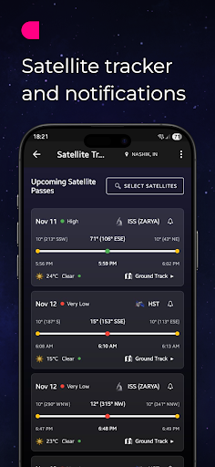 空中那个移动的亮点是什么?国际空间站何时会飞过我的位置?Satellite Tracker(卫星追踪器)应用可作国际空间站和可见卫星经过的预测。提醒将让你了解几分钟后国际空间站将开始经过天空,打开应用并查看要看的方向。 <br><br>主要功能包括: <br><br><b>卫星飞过定时器</b><br>立刻了解多久后下次国际空间站或任何选定卫星飞过。<br><br><b>(卫星和国际空间站)经过预测</b><br>获得国际空间站和最显眼的卫星经过的精确预测。设置提醒,不错过任何一次国际空间站和最显眼的卫星飞过。 <br><br><b>精选(卫星和国际空间站)经过提醒</b><br>经过列表可让你设置任何提醒,没有必要设置所有提醒,仅需对您想要目睹的卫星和国际空间站设置经过提醒。 <br><br><b>卫星飞行视图</b><br>卫星以真实速度飞过地球并有经过地球位置的三维视图。 <br><br><b>经过地球的卫星轨道</b><br>查看经过地球的卫星轨道,这些卫星轨道均经过详尽计算和适当可视化处理。 <br><br><b>空中卫星定位</b><br>相应移动设备可看到你的位置上方飞行卫星发光。 <br><br><b>设置你的位置</b><br>选择你的位置或自动确定你的位置,亦可从城市列表手动设置位置。在地球上利用大头针标记你的位置,这样就可以看见你的位置与活动卫星的关系。<br><br>ISS默认可用。 订阅时可以使用其他卫星。<br>该应用包含广告。 您可以通过订阅删除广告。<br><br>可选的:<br><br>通过SATELLITES LIVE订阅,您可以立即访问跟踪卫星在地球上和天空中的轨道,下一次出现的定时器,提醒最近的flybys。<br><br>SATELLITES LIVE是一个为期1个月的自动续签订阅,为期1周的免费试用版,可让您从应用程序中持续访问内容。在每个订阅期限结束时,订阅将自动续订,直到您选择取消订阅,并且您的帐户将在当前期限结束前24小时收取费用。 用户可以在Google Play的帐户设置中管理其订阅。<br><br>隐私政策:http://vitotechnology.com/privacy-policy.html<br>使用条款:http://vitotechnology.com/terms-of-use.html