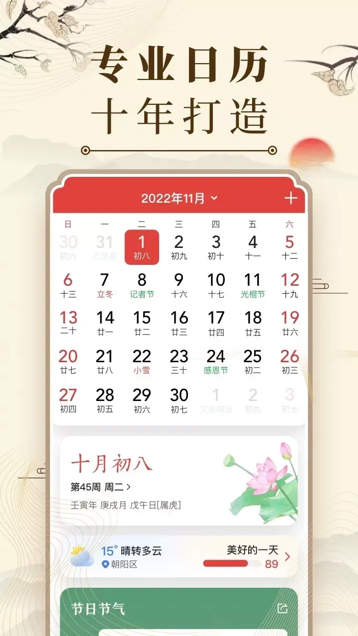 中华万年历-日历、日程、节气、天气、记事、提醒软件,功能全,体积小、速度快、口碑好,免费提供云服务,全球用户数量领先的跨平台日历APP,让时光充满乐趣! 中华万年历全新打造「语音记事」功能,5秒快速记下灵感与生活。长按语音即可启动,精准识别方言,帮你轻松记事情、记上班、记账单、记生日、纪念日等...记录重要日子,记下美好生活的大事小事, 记住人生每一个重要时刻! 1、日历:农历日历随便看,假日节气道道全。 2、天气:多维天气提醒,提供生活指数、台风降雨、空气质量、灾害预警等全方位信息; 3、记事:边说边记,精准识别 ;高效录入,智能分类;关联提醒,实时查看; 4、云同步:支持手机、Pad、网页端多终端实时同步; 5、私人定制:支持全屏半屏日历样式、多种主题皮肤。 【抱紧我们】 在线帮助:请在APP中点击「我的」-「设置」,通过「意见反馈」告诉我们。 客服电话:025-52883986(工作日09:00~18:00)