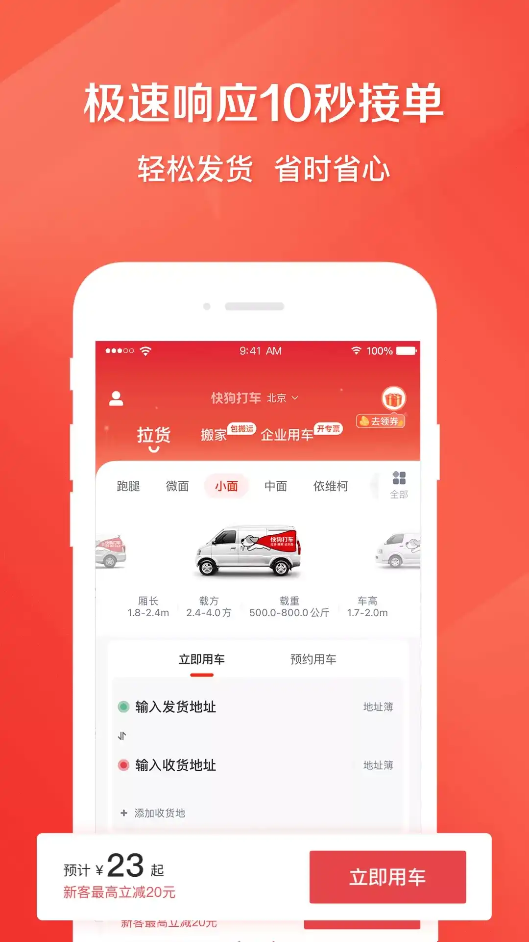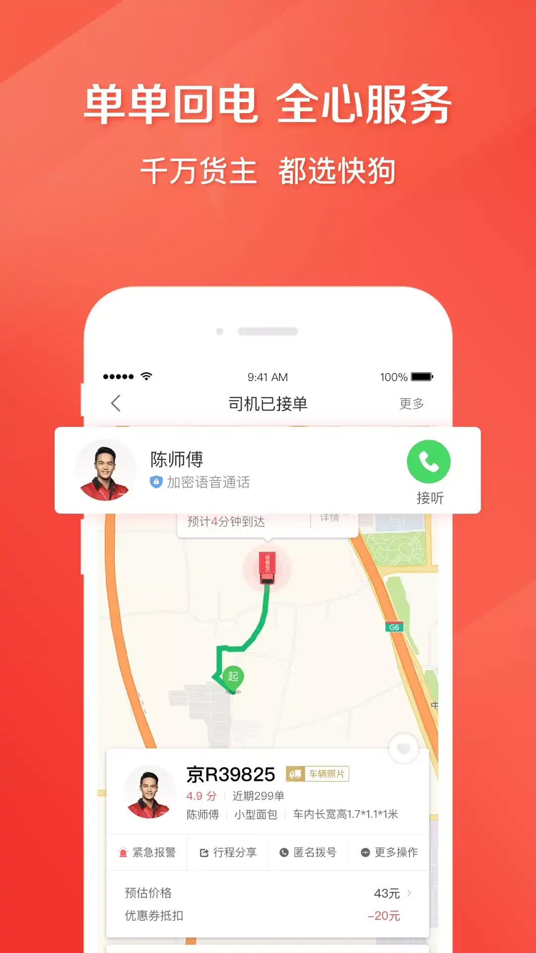 【快狗打车司机版】百万订单,加入平台,轻松赚钱! 2018年8月58速运正式升级为“快狗打车”。快狗打车通过先进的智能调度系统,随时随地的为个人、商家及企业用户提供快速、安全、省钱的短途物品运送服务。目前拥有超过350万名司机,业务覆盖6个国家及地区、346个城市的近2000万用户。 【百万订单】 订单源自快狗打车、58同城、58到家、小程序、菜鸟裹裹、转转等各大平台,货源不愁,上线随时接单! 【轻松赚钱】 大平台,自由出车,多劳多得,往返有单! 【平台保障】 管理规范,培训完善,全员保险,安心拉活! 【福利多多】 低价保养、特惠充电等专属福利,赶快加入吧! 【联系我们】 -微信公众号:快狗打车师傅之家 -新浪微博:快狗打车官方微博 -客服热线:4008-909-009