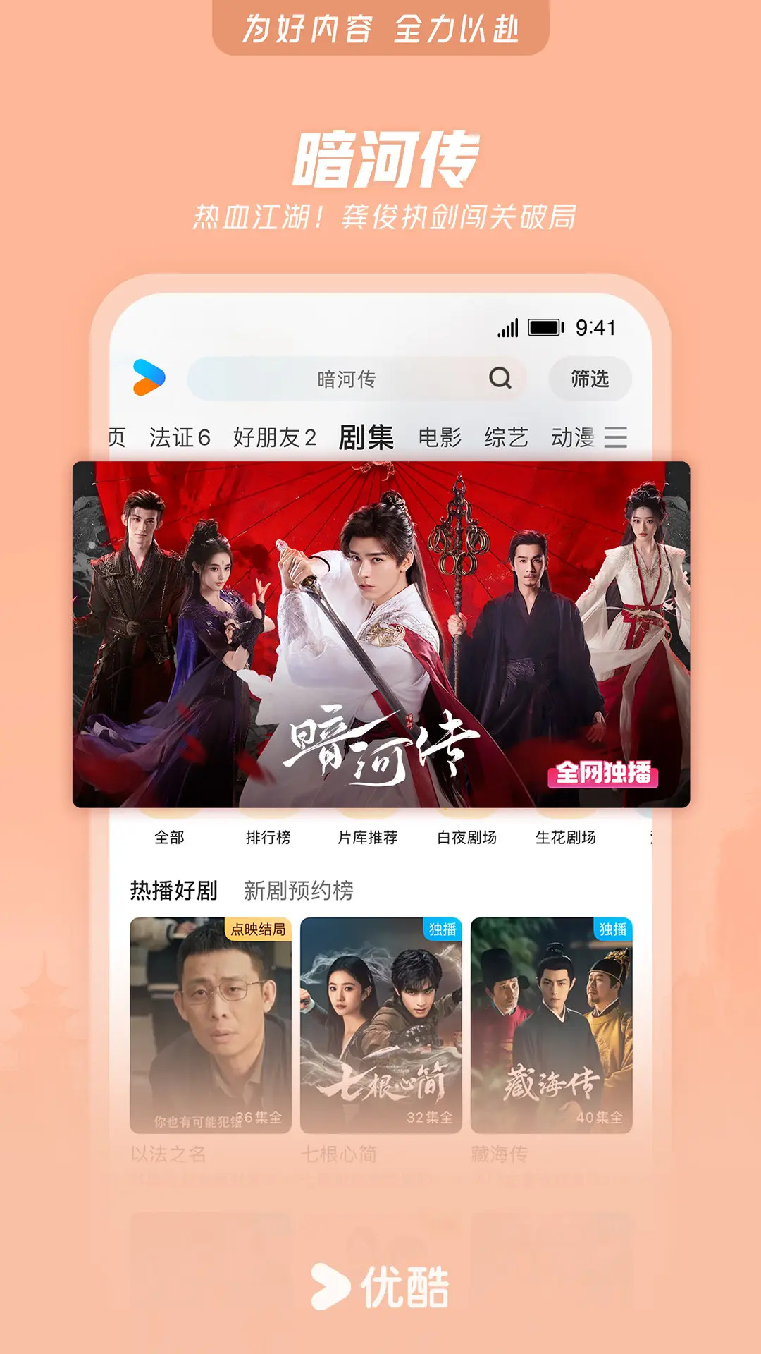 【精品内容,尽在优酷】 《暗河传》热血江湖!龚俊执剑闯关破局 《新闻女王2》重磅回归!佘诗曼黄宗泽新闻职场风云再燃 《入青云》侯明昊×卢昱晓演绎宿敌变夫妻 《东极岛》朱一龙吴磊国际大营救 《快乐趣吹风》高能抽风团爆笑出发 《偏爱之恋》高颜值男女海岛追爱 《天相》废相少年度化灵煞逆转天命 《灼灼韶华》热依扎、杨祐宁携手逆袭闯商海 《守护者们》龙套演员误入谍战迷局,结识爱国志士,以命布局联手抗敌 《绝命法官》正义法官张家辉为护子堕入犯罪深渊 《师兄啊师兄》神仙年番看师兄!苟道成圣,稳到飞起 《巨塔之后》宣萱打响豪门继承之战 《炙热游戏:百厨大战》与潘玮柏岳云鹏一起见证“年度厨王”诞生 《献鱼》陈飞宇X王影璐 魂穿少女攻略魔头师祖 《凡人修仙传》爆款IP!杨洋热血修仙逆天改命 《我在顶峰等你》少女重返青春逆袭改写人生 《哪吒之魔童闹海》哪吒涅槃重生高燃之战 《神墓 年番》脱胎换骨!辰南以己魔血染青天 《樱桃琥珀》纯爱无敌!赵今麦张凌赫青春甜恋 《以法之名》年度狠剧!张译扫黑除恶掀司法黑幕 《云深不知梦》大女主复仇爽番来袭! 《藏海传》全员狠人!灭门案引连环杀局 国内外大剧热综、扎堆院线影片、二次元热血动漫……看视频,用优酷APP 【简介】 兼容Phone和Pad设备。优酷中国知名视频网站,优酷App为7亿用户提供电视剧,电影,动漫,音乐,新闻,娱乐,游戏,原创搞笑等海量影视,高清流畅播放,极速离线缓存,支持微博、微信、朋友圈一键分享。强大搜索功能,优酷在手,应有尽有! 【温馨提示】 期许与鞭策,只为更好的起航!当您使用中如有任何疑问或想吐吐槽,都热忱欢迎您致电我们:400-810-0580(或通过“APP-设置-问题反馈”专属通道留言),优酷君一如既往在等你!