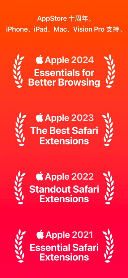 保存数据,并提升Safari的速度 —— 拦截广告、跟踪器、不必要的资源,并绕开反拦截程序检测器。 跟以下内容说再见: • 广告和横幅广告 • 自动播放视频 • 虚假的“x”按钮 • 滚动横幅广告 • 定时弹出窗口 • 跳转到“xxx”网站 • Safari中的YouTube视频广告 • 在线收集您的数据 享受更优质的Safari体验: • 网页浏览速度平均快2倍 • 数据使用量平均降低50% • 优化电池寿命 额外功能: • 绕开防拦截检测器 • 通过iCloud在设备之间的同步设置 • Safari中的内置按钮可用于快速更改 • 隐藏强制弹出的“允许Cookie”提示 • 隐藏热门网站上的评论部分 • 阻止成人内容(让儿童安全浏览) 针对以下语言的网站进行了优化: 英语,日语,印尼语,俄语,波斯语,拉脱维亚语,罗马尼亚语,保加利亚语,芬兰语,韩语,瑞典语,义大利语,法语,波兰语,荷兰语,爱沙尼亚语,希伯来语,冰岛语,立陶宛语,丹麦语,希腊语,土耳其语,西班牙语,葡萄牙语,捷克语,斯洛伐克语,挪威语,匈牙利语,中文,德语,越南语,阿拉伯语 发现了突破拦截的广告? • 在应用内部进行报告。该应用采用了众包拦截列表,并会根据与您一样的用户的反馈进行更新。 AdBlocker让您的生活更美好? • 写下评论并广而告之吧 —— 大多数iPhone和iPad用户仍然不知道他们可以阻止Safari中的广告呢 Pricing and Terms: App is a free ad-blocking extension for iPhone, iPad and Mac. There is an optional subscription with premium features for $9.99/year with a 7-day free trial. Premium features include enhanced country-specific ad-blocking, ability to enable multiple blocking categories at once and automatic updates of blocking filters in background. The subscription automatically renews unless turned off in AppStore app / Account / Subscriptions at least 24 hours before current period ends. Your iTunes Account will be charged when the purchase is confirmed. If you subscribe before your free trial ends, the rest of your free trial period will be forfeited as soon as your purchase is confirmed. Read more about our terms and conditions here: Terms of service: https://www.adblockerpro.com/zh-cn/terms Privacy policy: https://www.adblockerpro.com/zh-cn/privacy