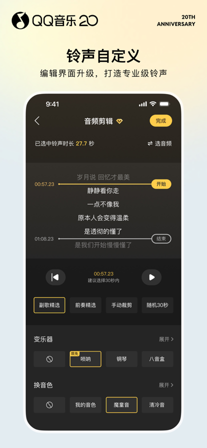 过亿正版音乐,热歌新歌每日首发,你想听的都在这里 • 海量的无损音乐曲库,优质而上乘的听觉享受 • 精品有声书、播客、儿童故事、助眠节目…沉浸式陪伴,度过闲暇时光 • 听歌识曲、哼唱识别,精准识别此刻播放或哼唱的歌曲 • 翻译歌词,支持数十万首热门英日韩泰歌曲的汉译音译 • 个性化推荐,全站依你的口味定制专属音乐内容 • 车载互联,支持宝马、福特等车型的车载应用 • 强大的搜索,歌手、专辑、歌单、MV、类型、歌词、拼音、语音多种搜索方式均支持 ------------------------------------------------------------------------------- 主要功能: 【海量音乐】过亿正版无损品质曲库,你想听的都在这里 【全新发现】精选推荐音乐杂志和专栏,寻回最初遇见音乐的喜悦 【视频】多品质MV播放/下载,精彩短视频,音乐不仅是听见 【个性电台】量身推荐符合你口味的歌曲 【评论】一纸乐评,解读音乐灵魂。一席热评,交换音乐故事 【扫一扫】扫二维码、扫图识专辑,除了音乐扫出更多精彩 【专业音效】SuperSound专业的特色音效,智能识别场景音效,适配百款耳机 【歌词海报】当歌词遇上图片,放肆分享你的心情吧 【那年今日】记录听歌回忆,重温那时的音乐心情 【跑步电台】歌曲匹配步频,好友PK助跑,让跑步不再孤单 【明星直播】观看偶像、音乐人新鲜的直播内容 【百变播放器】玩转播放页,一大波复古拟物播放页美翻你 【歌手写真】高清大图轮播离爱豆更近,开放投稿安利你的爱豆 【翻译歌词】数十万首热门英日韩泰歌曲支持中文翻译 【听歌识曲】精准识别、歌词同步显示、立即下载 【车载互联】支持宝马、福特等车型的车载应用 【免流量服务】2/3/4G下音乐任性畅听下载 -------------------------------------------------------------------- ---------- 【bubbleticket自动续费订阅说明】 1.订阅服务:bubbleticket连续包月(1个月) 2.权益:BubbleTicket是豪华绿钻的活动会员名称,享受豪华绿钻会员权益,包括播放VIP歌曲,使用SQ无损音质。 3.订阅价格:首月价格28元,自动续费为5元/19元/20元/21元/22元/23元/24元/25元/26元/27元/28元/40元/56元/月; 4.自动续费:购买连续包月会员的帐号,会在每个月到期前24小时,自动在iTunes账户扣费并延长1个月会员有效期。 5.关闭服务:如需取消订阅,请手动打开iOS的“设置” -->进入“iTunes Store 与 App Store”-->点击“Apple ID”,选择"查看Apple ID",进入"账户设置"页面,点击“订阅”,选择豪华绿钻自动续费取消订阅即可。如未在订阅期结束的至少24小时前关闭订阅,此订阅将会自动续订。 6.服务协议(含绿钻豪华版自动订阅服务规则):https://y.qq.com/jzt/service_terms/1e602e.html 7.隐私协议 :https://privacy.qq.com/document/priview/0b0dc16a0f004a35b77b7fd48a0b125b 【豪华绿钻自动续费订阅说明】 1.订阅服务:1个月豪华绿钻自动续费(1个月)、1季豪华绿钻自动续费(3个月)、1年豪华绿钻自动续费(12个月) 2.订阅价格:1个月豪华绿钻自动续费15元/月,1个月豪华绿钻自动续费21元/月,1个月豪华绿钻自动续费26元/月,1个月豪华绿钻自动续费28元/月,1个月豪华绿钻自动续费30元/月,1季豪华绿钻自动续费45元/季,1年豪华绿钻自动续费158元/年 3. 自动续费:购买连续包月会员的帐号,会在每个月到期前24小时,自动在iTunes账户扣费并延长1个月会员有效期。 4. 关闭服务:如需取消订阅,请手动打开iOS的“设置” -->进入“iTunes Store 与 App Store”-->点击“Apple ID”,选择"查看Apple ID",进入"账户设置"页面,点击“订阅”,选择豪华绿钻自动续费取消订阅即可。如未在订阅期结束的至少24小时前关闭订阅,此订阅将会自动续订。 5. 服务协议(含绿钻豪华版自动订阅服务规则):https://y.qq.com/jzt/service_terms/1e602e.html 6.隐私协议:https://privacy.qq.com/document/priview/0b0dc16a0f004a35b77b7fd48a0b125b 【超级会员自动订阅说明】 1. 服务名称:QQ音乐超级会员自动订阅 2. 订阅周期:超级会员连续包月、超级会员连续包季、超级会员连续包年 3. 价格:超级会员连续包月20元/月、超级会员连续包月30元/63元/80元/95元/108元/月、超级会员连续包季68元/季、超级会员连续包年248元/年、348元/年 4. 购买连续包月会员的帐号,会在每个月到期前24小时,自动在iTunes账户扣费并延长1个月会员有效期。 5. 如需取消订阅,请手动打开iOS的“设置” -->进入“iTunes Store 与 App Store”-->点击“Apple ID”,选择"查看Apple ID",进入"账户设置"页面,点击“订阅”,选择QQ音乐超级会员取消订阅 取消订阅即可。如未在订阅期结束的至少24小时前关闭订阅,此订阅将会自动续订。 6. 服务协议(含超级会员自动订阅服务规则):https://y.qq.com/jzt/service_terms/1e602e.html 7. 隐私协议:https://privacy.qq.com/document/priview/0b0dc16a0f004a35b77b7fd48a0b125b 【听书会员自动订阅说明】 1. 服务名称:听书会员自动订阅 2. 订阅周期:1个月 3. 价格:6元/月 4. 购买连续包月会员的帐号,会在每个月到期前24小时,自动在iTunes账户扣费并延长1个月会员有效期。 5. 如需取消订阅,请手动打开iOS的“设置” -->进入“iTunes Store 与 App Store”-->点击“Apple ID”,选择"查看Apple ID",进入"账户设置"页面,点击“订阅”,选择QQ音乐听书会员 取消订阅即可。如未在订阅期结束的至少24小时前关闭订阅,此订阅将会自动续订。 6. 服务协议(含听书会员自动订阅服务规则):https://y.qq.com/i/serv_terms_new.html#auto-renew 7. 隐私协议:https://y.qq.com/m/client/intro/privacy.html