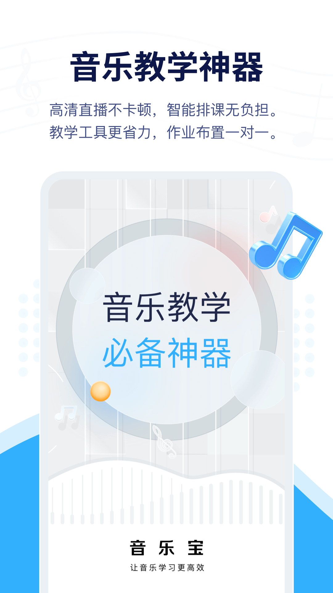 「音乐宝APP」是一款高效的在线音乐教学服务工具,为机构&个人快速开展多场景、多乐器的音乐教学业务提供一站式解决方案,助力其打造属于自己独立品牌的在线音乐教室,让音乐教学和管理更加简单高效<br><br>「主要功能」<br>- 音乐直播教室,还原真实练琴场景,支持多种音乐教学工具。<br>- 智能日历课表,支持多类型课程,排课有规划,无压力。<br>- 乐库功能,支持12种乐器,涵盖考级、流行、古典曲谱。<br>- 作业点评系统,课前、课后布置作业加强练习,形成教学闭环。<br>- 专属个人工作室,再小的组织,也值得被重视,为教培人量身设计。<br>- AI辅助工具,内核工具库,目前已开发AI陪练。<br>- 消息频道,社交、成员管理一体,让您的教学管理非常便捷。<br><br>「反馈」<br>为了您更好的体验。<br>- 有想法与建议,可以随时在App 内「消息-音乐宝助手」联系我们<br>- 我们的产品经理,随时等候您。
