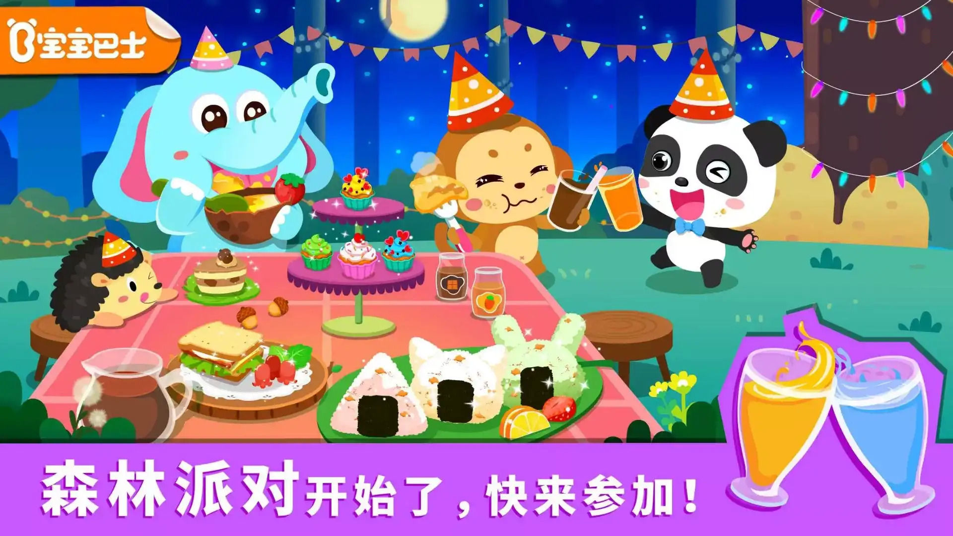 神秘的【宝宝森林美食】派对开始啦!不过,只有厨艺高超的宝宝才能参加哦! 不会厨艺怎么办?让小伙伴来帮你!胡萝卜饭团,香蕉飞饼,椰子布丁……哪一款是你的菜? 找食材,做美食,加调料,美食完成了,真棒,下一个小厨神就是你! 【第一步:收集食材】 拔萝卜,挖地瓜,尽量多收集食材吧!椰子树太高怎么办?拿好水球,瞄准,发射,新鲜椰子轻松拿到! 【第二步:食材加工】 用鳄鱼牙齿把香蕉切块,大象的长鼻子适合和面……椰子壳好硬,要怎么打开呢?快请啄木鸟来试试! 【第三步:制作美食】 把飞饼煎到金黄,再加入香蕉,味道完美!还有神奇的模具,放进米饭压一压,变出各种形状饭团! 【第四步:一起分享】 可口美食做好了,铺好桌布,快请小伙伴们一起来分享吧,体验烹饪之外的乐趣! 产品特色: 丰富食材,多种美食制作,体验趣味烹饪; 各种道具和调料,自由选择,激发想象力; 寓教于乐,体验美食制作带来的动手乐趣! 宝宝巴士以孩子的兴趣启蒙为出发点,从健康、语言、社会、科学、艺术五大领域关注幼儿成长,吸取蒙氏教育精髓,根据幼儿不同年龄段左右脑发育、敏感期特点和学习重点来设计产品,打造“年龄+能力”的多元化产品体系。让孩子在游戏中独立思考,自由学习,享受探索世界的乐趣。 _________ 设计理念: 宝宝巴士(BabyBus),专注启蒙,而不仅仅是教育。 我们专注于启发,而不只是学习。 我们专注于能力培养,而不只是单一认知。 我们专注于寓教于乐,而不是填鸭式教学。 宝宝巴士,快乐启蒙!全球3.5亿家庭用户的早教首选,您身边的幼儿教育专家! 在宝宝巴士,我们自己也身为父母,所以非常重视儿童的健康和隐私。下载应用前,您可以从这里阅读我们的隐私政策:http://cn.babybus.com/index/privacyPolicy.shtml _________ 欢迎联系: 微信:宝宝巴士 微博:@宝宝巴士 官网:http://www.babybus.com 邮箱:cn@babybus.com