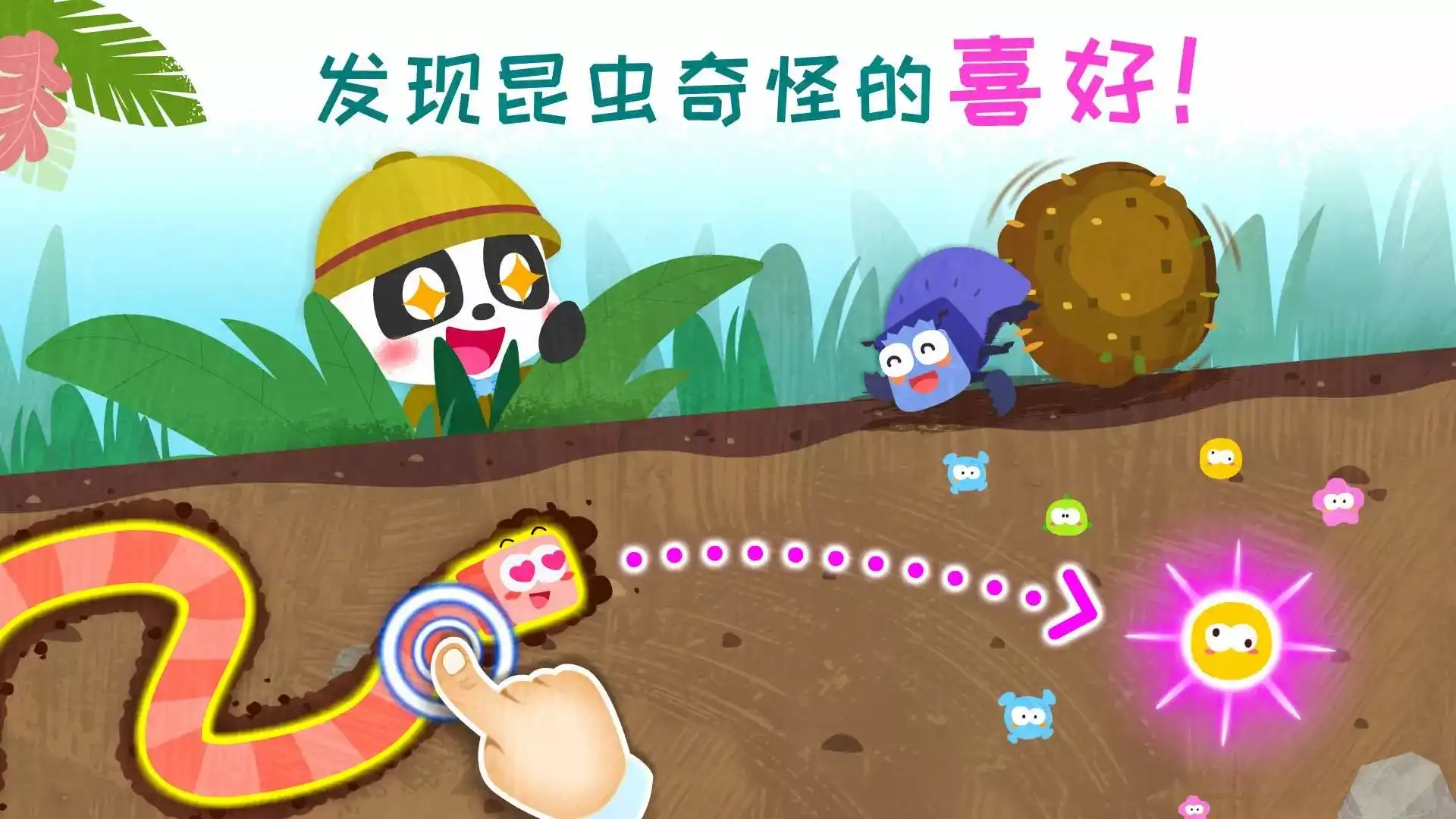 【奇妙昆虫日记】是一款专为宝宝设计的昆虫认知APP。 宝宝通过寻找+观察+思考,便能轻松学习昆虫知识! 瓢虫喜爱的食物是什么?屎壳郎有哪些外形特点呢? 宝宝们,一起开启奇妙的昆虫世界之旅吧! 产品内容: 昆虫“捉迷藏” ——锻炼宝宝观察力 小昆虫们都藏起来了,宝宝快发挥观察力,拨开蘑菇、翻动草丛、搬起石头,认真寻找!它们会喜欢藏在哪里呢? 益智昆虫图鉴 ——认知昆虫外形 成功找到昆虫,获得贴纸。宝宝根据昆虫外形,动手又动脑,完成拼图。拼图里面还有惊喜等宝宝发现哦! 森林医生来帮忙 ——了解昆虫习性 植物生病了,瓢虫、蚯蚓可是优秀的森林医生!宝宝引导瓢虫吃掉害虫,拖动蚯蚓消灭土里的细菌,帮助植物健康生长。 昆虫跳高、击敌赛 ——考验宝宝反应力 蟋蟀参加跳高赛,宝宝帮它躲避猫头鹰,跳上蘑菇,一飞冲天。警报!蚂蚁来偷螳螂卵了,宝宝快击退敌人吧! 产品特色: 1、结合昆虫特性进行互动,增进宝宝对自然的好奇心; 2、帮助宝宝认知昆虫的外形、食性、天敌、居住环境等; 3、精美萌趣的昆虫角色,培养宝宝的探索兴趣。 宝宝巴士(BabyBus)是专注打造儿童启蒙数字产品的原创品牌,累计服务全球5亿家庭用户。宝宝巴士秉承“快乐启蒙”的理念,用奇妙有趣的方式,为儿童量身定制以“好听(国学故事)、好看(儿歌动画)、好玩(互动APP)”为特征的海量数字启蒙内容,让孩子趣味认知、感受“真、善、美”。 宝宝巴士(BabyBus)已发布200多款APP,推荐使用宝宝巴士儿歌、宝宝巴士故事、宝宝巴士奇妙屋、宝宝巴士、宝宝恐龙家园、化妆小公主、宝宝航海挑战、奇妙美味日记、奇妙生日派对、奇妙鲜花房、奇妙恐龙帮帮队、奇妙手工调色、奇妙森林历险记、奇妙艺术日记、宝宝爱自然、照顾小宝宝、中华美食、奇妙好习惯、宝宝地震安全、奇妙星际厨房、宝宝学配对、奇妙农场、糖果工厂、雪糕工厂、宝宝小船长、奇妙咖啡餐厅、宝宝小画板、宝宝运动会、宝宝调色屋、宝宝甜品店、宝宝爱水果蔬菜、宝宝开车大冒险、恐龙王国、宝宝超市、宝宝医院、宝宝假日旅行、宝宝上厕所、宝宝梦想小镇、宝宝爱整理、公主化妆舞会、宝宝救援队、宝宝建城市、时尚小公主、奇妙宠物美妆店、奇妙运动日、宝宝魔力画笔、宝宝幼儿园、奇妙碰碰车、奇妙企鹅部落、奇妙梦幻城堡、奇妙昆虫日记、奇妙的动物家庭、奇妙珠宝店等APP。 欢迎联系 微博:@宝宝巴士 官网:http://www.babybus.com 邮箱:cn@babybus.com