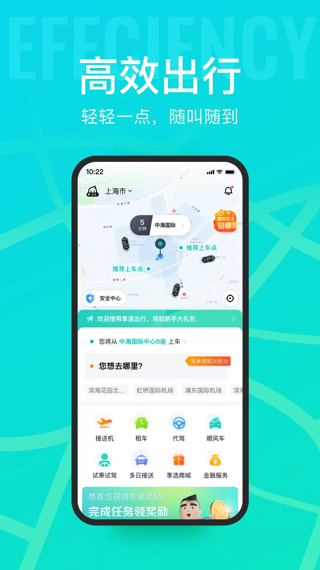 享道出行,整合上汽集团强大资源及技术实力,打造互联网出行专业品牌,满足用户碎片化、多元化、全场景、个性化出行需求。 【全场景智慧出行综合体】 网约车:采用高效匹配策略,保证乘客安全高效出行 - 涵盖舒享型、尊享型、商务六座及出租车(部分城市); - “享学小专车”(多日接送),一次下单即可精选司机解决多日通勤、接送孩子等用车需求。 企业用车:专业、优质、温馨的用车体验,免去企业自持车辆的管理烦恼。 顺风车:智能化车主信任认证,司乘双方隐私保护,降低司乘出行成本。 代驾:更优质、更安全,极速响应,让有车用户放心应酬,舒心到家。 Robotaxi:高级别自动驾驶技术在上海、苏州、深圳给您安全、有趣、触手可及的未来出行。 租车:全天候无人自助租车,随借随还,日租/时租灵活选择。 【温馨提示】 新用户首单1元起,更多优惠活动见APP 【联系我们】 1、在线客服:个人中心 - 客服 2、品牌合作:xiangdao-co-branding@saicmobility.com 3、企业合作:4008821119;booking-zuche@saicmobility.com