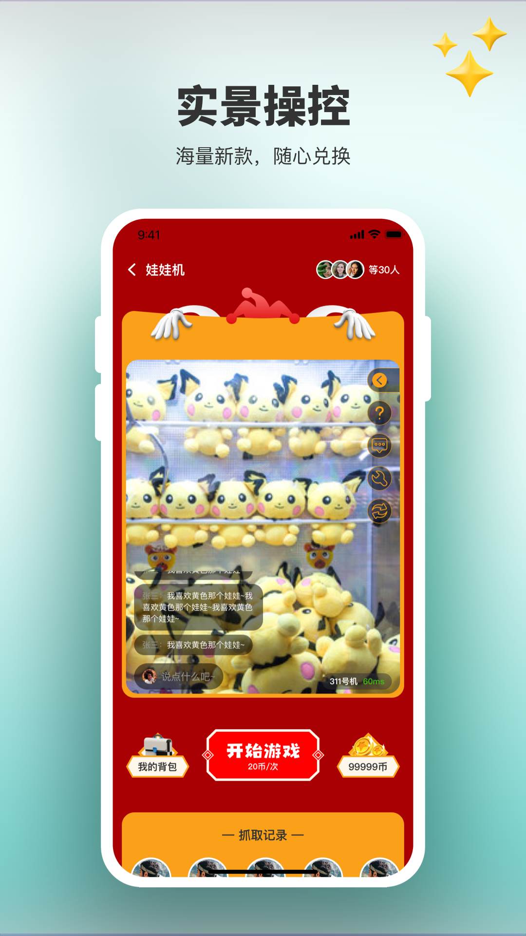 还在玩线下排队,半天抓不到公仔的娃娃机吗?是时候来体验在线直播夹娃娃了!足不出户,不要人挤人,在家就能天天抓娃娃,一起来玩吧~ 【真实街机】投影手机在线实时操控,潮玩手办玩具库存充足。 【操作简单】上帝视角摄像头抓娃娃机,打破传统抓娃娃机局限,更容易抓中。 【超强抓力】超低挡板配合超强抓力大大提高命中率,手残党的春天来了~夹娃娃也得挑个省钱的! 【娃娃萌又多】超值爆款网红娃娃,乖萌呆种类多,蠢萌娃娃,可爱装饰品,创意玩物,总有一款打动你。 【全国包邮】全国两件起包邮!无论是自己享受胜利果实,还是送给心仪的TA,就是这么简单! 【在线客服】在线客服解决一切疑难杂症~ 【福利大推送】新会员免费领币,每日签到送币。 是时候来体验下线上游戏厅了!一起来玩吧~