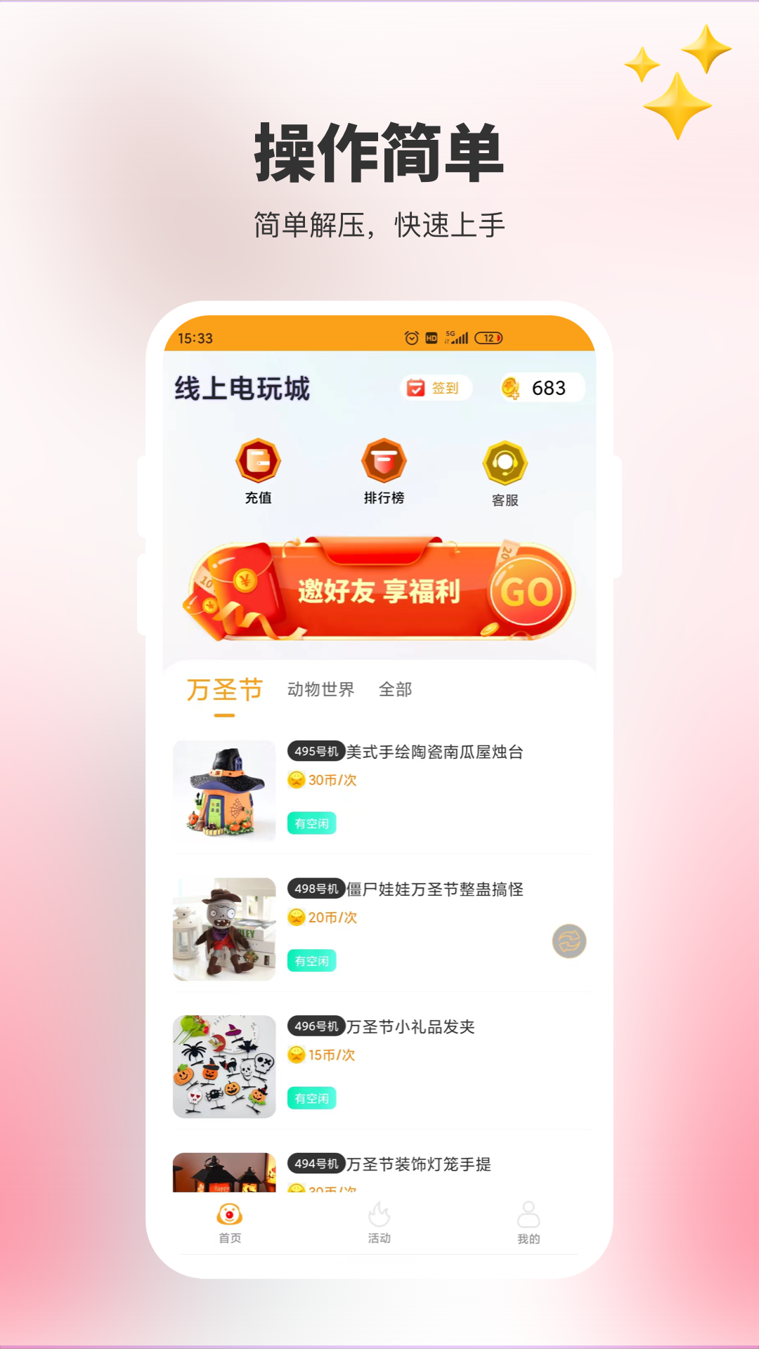 线上电玩城是一款线上远程抓娃娃的娱乐应用,可以抓娃娃,抓玩具,抓饰品,抓百货…… -汇聚全网热门潮玩公仔好物,和万千潮玩爱好者们一同体验在线获取的乐趣,随时开启你的潮物寻觅之旅! -随时随地,想玩就玩想抓就抓,24小时永不打烊。 -坐着能抓到,躺着也能抓,潮流炫酷玩法陪你嗨翻天! -安全健康,全程无接触,游戏更放心。 -每日上新,各种网红萌娃、实用家居、心水美妆、节日礼品应有尽有,紧张的日常活动,每天给你新鲜感和幸福感。 -所有产品均可快递到家,享受宅家拆快递的快感,完善贴心的客服MM,帮你解决各种问题。