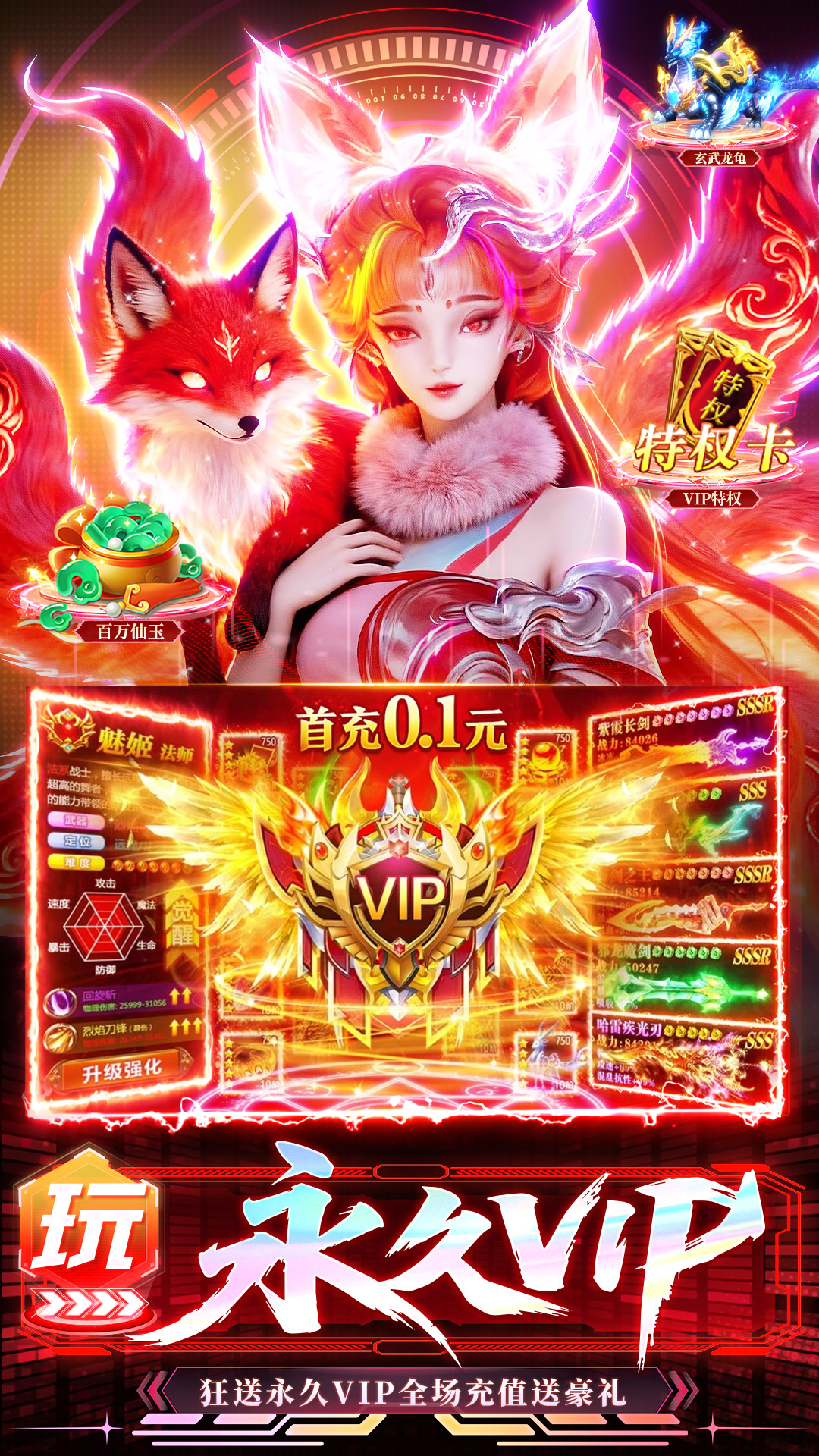 至尊礼包码:SVIP666<br>豪华礼包码:SVIP888<br>全新3D国风仙侠武侠修仙MMOARPG手游,为玩家们提供了一个全新的修仙世界。玩家可以身临其境地感受到渡劫飞升、副本闯关、装备升级、情缘系统以及PVP竞技的精彩内容。<br><br>故事背景:<br>洪荒初开,【轩辕】【蚩尤】【神农】三分天下,三族为争夺神州霸权互相征伐,绵延战火耗尽天地灵气。西方魔王趁机入侵,自此三界大乱,东方天庭被毁,诸神散落三界,上古传说中的万世天劫终于来临…...面对这场突如其来的浩劫,受到重挫的天庭诸神将如何面对考验、重返天庭?<br><br>游戏新特性<br><br><br>——美术特色<br>作为一款由高端引擎Unity3D精心打造的游戏,超炫的粒子特效技能,高面3D模型,精美的炫丽地图场景,细节堪称完美的装备特效<br>——玩法特色<br>题材源自上古时期,惟妙惟肖的游戏界面,灵宠,坐骑养成,激情阵营国战等系统,演绎了中国纯正的修仙文化,带你走进梦幻的修仙世界!<br>——战斗玩法<br>战斗属性由多元化,如职业、装备、宠物、成长炼化等元素综合决定,玩家可以通过触动手机上相应的键位操作方向与释放技能。<br>——副本玩法<br>世界boss,刷塔副本,单人副本,团队副本,各种玩法应有尽有<br>——装备系统<br>装备可以升级,也可以通过打怪掉落拾得,还有任务奖励。即使一分钱不花,只要你勤奋,你就可以很快地拥有一套极品装备,站在王者之颠。