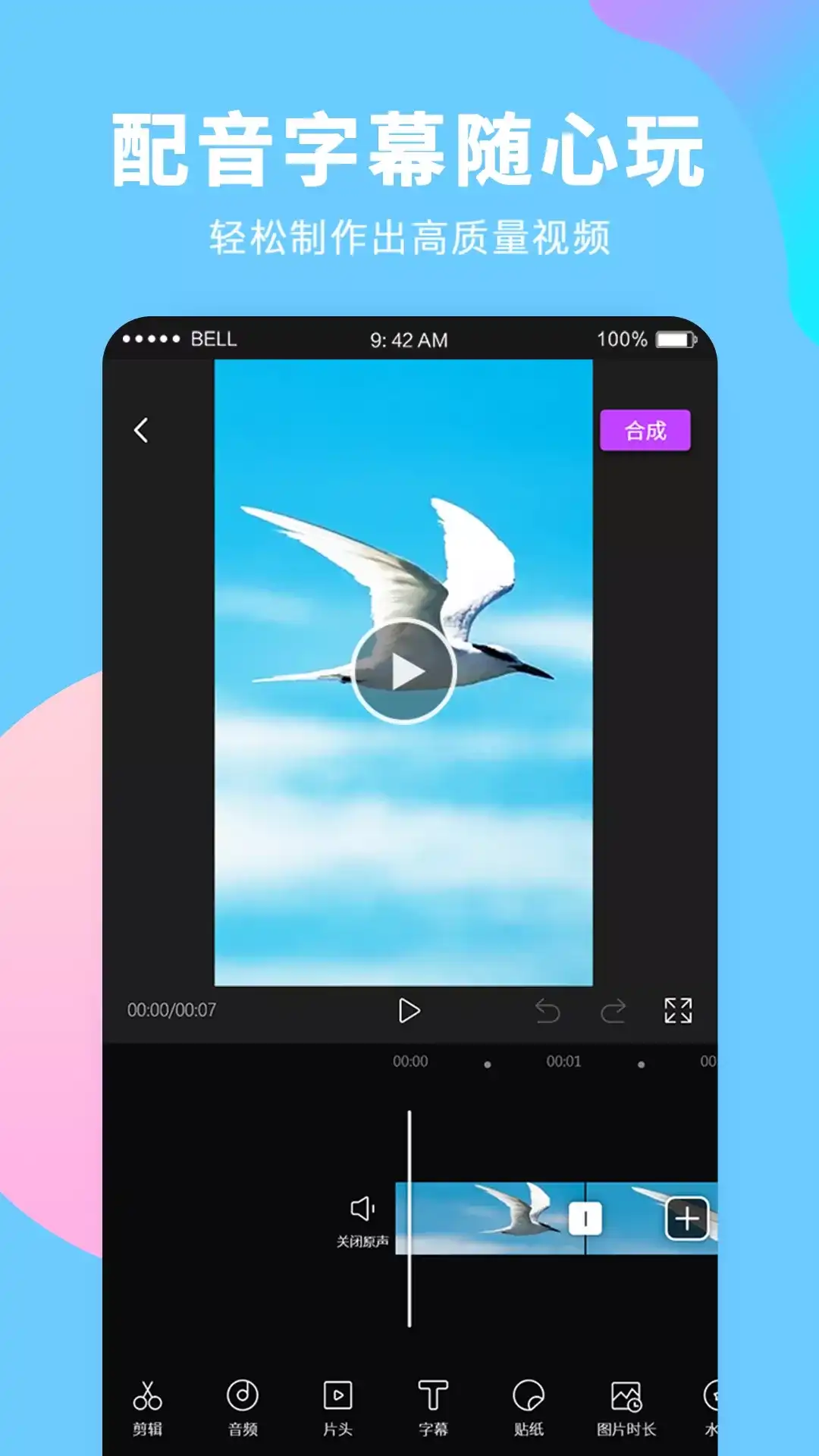 操作简单,功能强大的视频剪辑神器; 视频编辑、视频配音,炫酷视频制作大师 炫酷的素材,柔美or震撼的背景音乐就是我们的额外特色 海量视频炫酷片头+海量背景音乐素材+搞笑的表情插入 几步就将你的视频变成炫酷吊炸天的神作,让你成为你圈子里的逼王 炫酷片头片尾素材,视频特效,搞笑的表情,这些我们都给你准备好,并且经常更新,你也可以提出想要什么样的效果,我们都能满足 【功能介绍】 ——超给力的视频剪辑 强大的编辑视频功能,能让您随心剪切到0.1S,剪辑拼接,字幕编辑,更贴心 ——电影级的片头素材 炫酷素材,特效视频,经常更新,随意挑 ——BGM背景音乐的大杂烩 音质清晰,流畅不卡顿,完美呈现电影级后期配音 ——简便却又高效的字幕添加 搞笑表情,神字幕,神解说,配上文字让您的视频更加趣味 ——封面可以自己随意选 自己的视频配上一张更吸引人的封面,让您的视频曝光率飙升 ——贴心的一键分享 一键分享,云端保存,不在占用本地空间并将快乐分享出趣