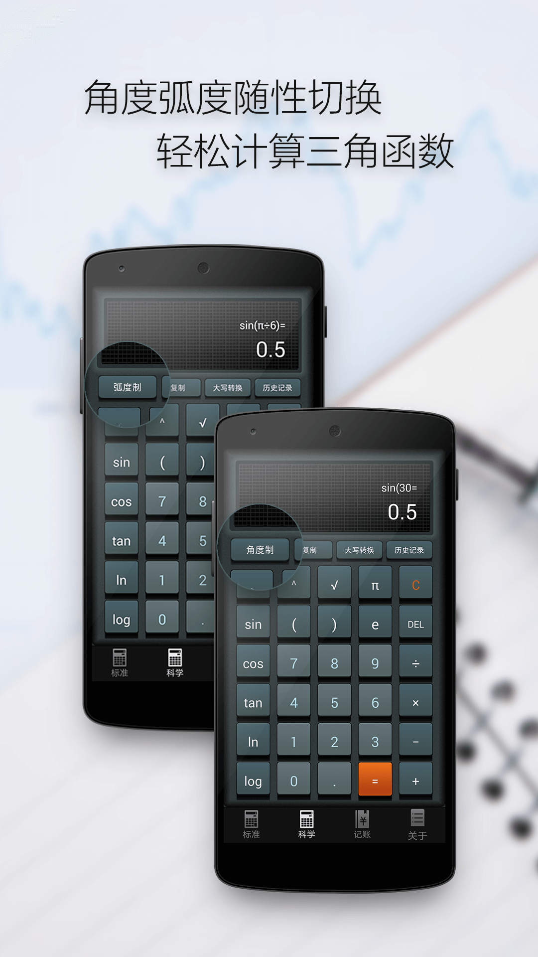 字体大小随意设置,大字版爱好者福音~按等号前,实时自动出计算结果~ 集计算器、科学计算器、分数计算器、汇率换算、个税计算器、房贷计算器、车贷计算器、五险一金、日期计算器、进制转换、自定义公式、单位换算、亲戚计算器等为一体,完美解决各种计算、换算的超级计算器! 有历史纪录(可添加备注),语音播报,可大写转换,复制结果,操作简单方便,多款精美主题随意切换! 计算、记账、报表、备忘录一个app全部搞定! 【科学计算】三角函数计算,支持角度、弧度计算,支持阶乘、角度制和弧度计算、平方、根号、开方、指数、对数等等; 【房贷计算器】 支持商业、公积金、组合贷,实时利率表,可等额本息,等额本金详细切换查看 【个税计算器】支持输入月工资,扣除五险一金查看税后收入及纳税金额,快捷简单好用; 【语音报数】老板、会计算账更加快捷高效,不担心输错数字; 【大写转化】一键将计算结果转化成数字大写,方便财务报销使用; 【历史记录】计算过程完整记录,方便随时核对查看及修改; 【一键复制】一键复制计算结果,方便直接使用,节约您的时间 目前市场上主流Android系统及手机机型都能完美适配!