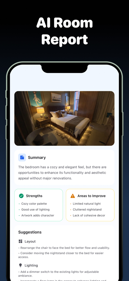 你知道房间可以更好看,只是还无法想象出具体的样子。 拍一张任意房间的照片,选择一种设计风格,几秒钟内就能看到它被彻底改造的效果——不需要买任何家具,也不需要打开任何一桶油漆。 你可以做什么: • 房间改造——看看你的真实房间被重新设计成现代、北欧、波西米亚、工业、田园、中世纪现代以及几十种其他风格的样子 • 家具替换——在你的真实空间中预览新家具、新布局和新搭配方案 • 颜色变换——尝试不同的墙面颜色、地板材质和装修效果,完全不需要油漆色卡 • 虚拟布置——空房间?瞬间用时尚家具填满它 • 任意房间——客厅、卧室、厨房、卫生间、书房、儿童房和户外空间全部适用 为什么人们都在用: • 搬新家却不知道从哪里开始装修 • 正在翻新,想在动手之前先看到效果 • 让你的另一半直观看到你脑海中的画面(而不是为此争论不休) • 租房一族想要最大化利用小户型或不规则空间 • 房产经纪人不需要租借家具就能进行房屋布置展示 使用方法: 1. 拍一张房间的照片 2. 浏览各种设计风格和主题 3. 即刻在你的真实空间中看到全新设计效果 4. 保存你喜欢的方案并分享给他人 无论你是在重新装修、搬家,还是只是躺在沙发上想"如果这个房间变成北欧风会怎么样"——现在你可以亲眼看到了。 --- Terms of Use: https://nextdio.com/terms Privacy Policy: https://nextdio.com/privacy