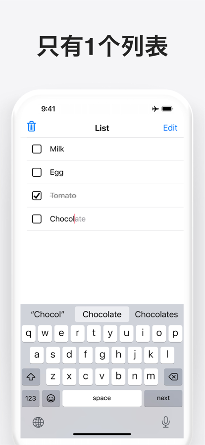 最简单的待办事项应用。 本应用只有一个列表!您可以在一个屏幕上管理所有任务和待办事项。 * 锁屏小部件 * 主屏幕小部件 * 一键添加任务 * 轻触垃圾桶按钮清理已完成任务 * 向左滑动任务可删除 * 向右滑动任务可添加颜色 * 支持深色模式