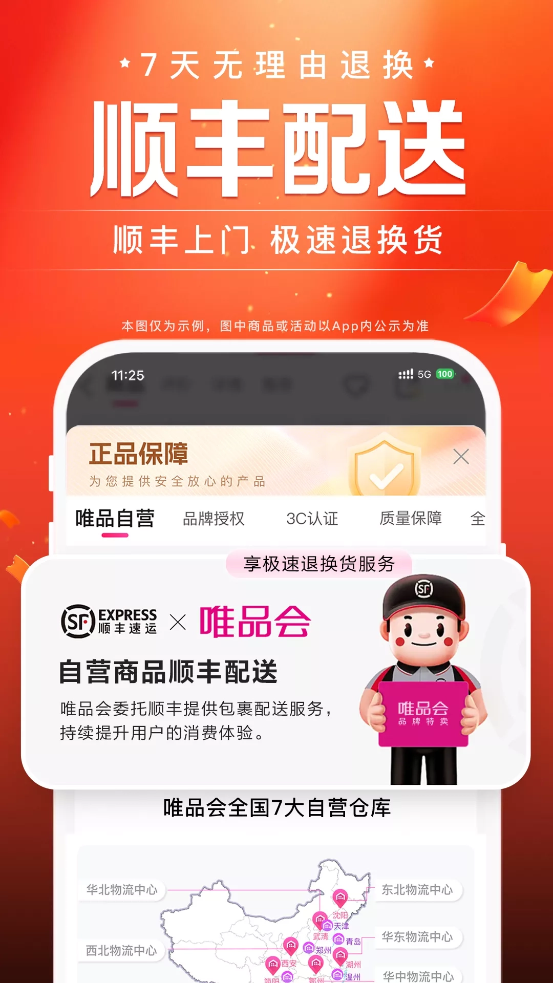 上唯品会,大牌衣服3折买! 专注服装品牌特卖16年,大牌衣服品牌源头采买,100%正品保障。 【正品保障 顺丰包邮】 唯品会与各大品牌建立长期战略合作,品牌源头采买,同时还和中检成立联合鉴定实验室,确保每一件商品都是100%正品。 自营商品顺丰配送,尺码不合适不用怕,顺丰上门退换货非常方便。 【限时狂秒 每日上新】 限时狂秒每天早十点和晚八点上新,精选爆款商品进行官方大额补贴,超低到手价超划算。 【购物体验 实力保障】 人工客服天天在线,每天9:00~24:00贴心在线为你服务; 7天无理由退货,自营商品免费上门收件(自行寄回返10元唯品币); 还有自营商品满88元包邮,全年无限次! 【新人享豪礼,欢迎体验】 唯品会新人福利活动仅限唯品会平台新人用户参与,新人用户是指未在唯品会平台下过有效订单的用户,新人福利活动仅限受邀用户参加,此活动长期有效,参与路径为APP首页。 【意见反馈】 如有建议,请随时反馈,唯品会时刻倾听您的声音: 官方微博:@唯品会 官方微信:“唯品会” 唯品会客户端:个人中心-唯品客服-APP反馈