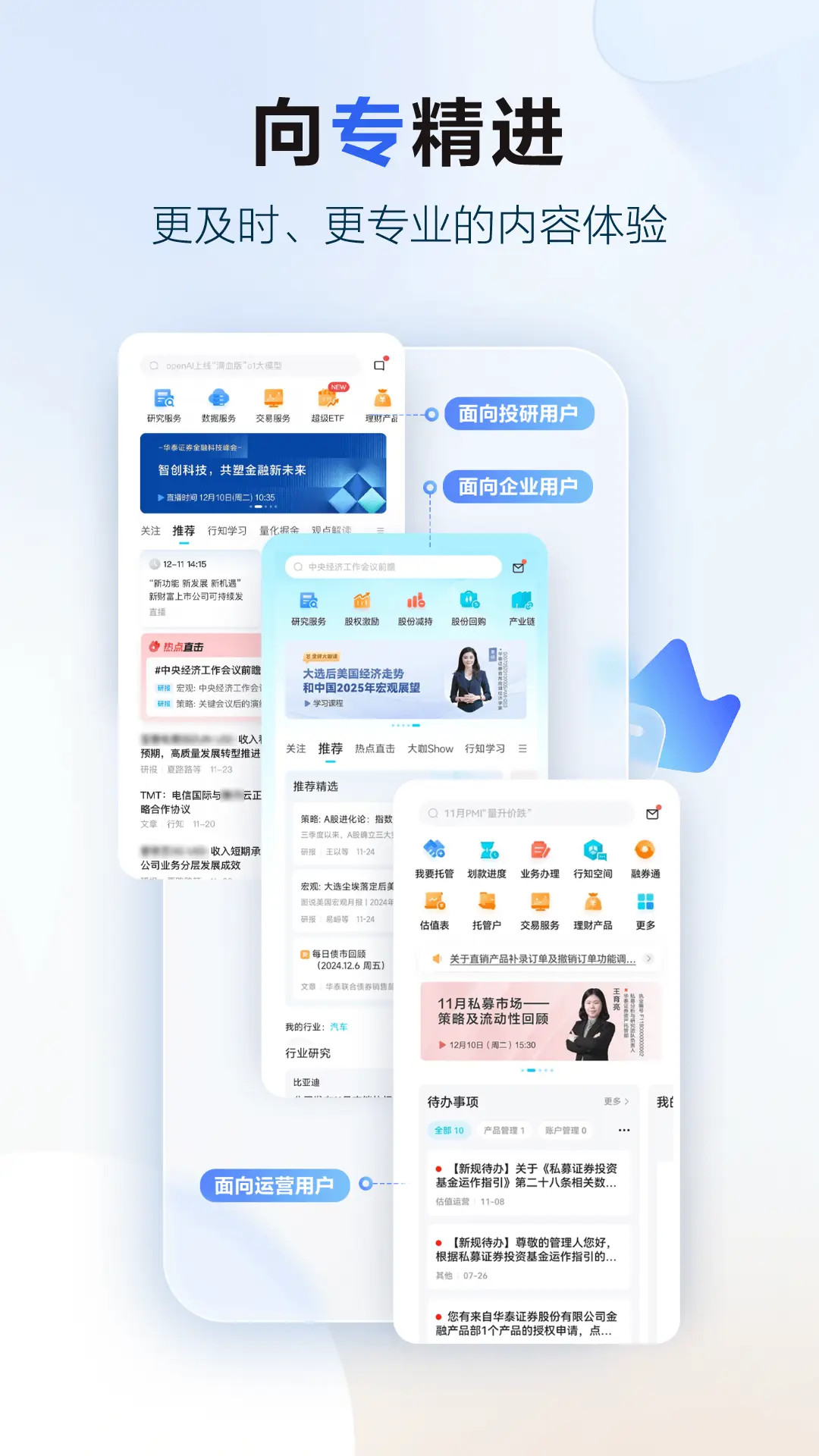 小编提醒:投资有风险,选择需谨慎!软件商店提醒您,软件商店仅作为应用程序分发及信息发布平台,不提供相关金融服务,不构成任何担保或承诺;请您使用此类应用时谨慎选择,充分了解风险,理性投资,保护自身财产安全! 详情描述:行知是华泰证券专为机构投资者和企业打造的一体化金融服务品牌,致力于以前沿的产品、服务、平台满足各类综合金融需求,构建同行、相知、共赢的机构服务新生态。行知特别面向企业客户、机构客户分别推出定制化专属版本,提供更智能、更懂你的服务。【企业客户专属版本】面向企业客户,提供涵盖上市前中后的IPO辅导、业绩路演、股份管理等功能服务与内容生态,以及通过“行知产业圈”,打造企业的朋友圈。【机构客户专属版本】围绕机构投资者在投研、交易、运营等领域服务需求,提供前沿、专业、周到的一站式综合金融服务。行知一体化金融服务包括:【研究服务】覆盖各领域、各行业的研究报告、直播会议、视频栏目、研究资讯、投资组合、研究视图和数据库。专业洞见,海量智库,七大法宝,待您开启。【投行服务】面向机构客户,行知综合展示华泰联合项目信息、业务动态,支持 IPO和可转债项目申报备案,并实现定增项目意向函提交及债券在线申购功能,可一键下载模板、拍照上传材料、即时查询结果;全面整合新股、新债、再融资发行信息,投行服务更简单、更快捷、更高效。面向企业客户,行知提供线上+线下的企业全生命周期服务,助力企业充分备战上市辅导考试,定制化页面展示企业IPO项目进程,及时提供热门行业深度解读,全面整合一级市场动态,一站式汇集投行服务代表案例,全程陪伴企业成长。【融券服务】行知推出融券通平台移动端,充分借助科技的力量,提升融券交易中要素信息的透明度和信息传导效率,持续提升上游出借方和下游融券方的匹配效率,让更多用户都能享受到数据的价值和服务。此外,融券通平台上推出风云榜,您可及时获取证券借贷行业的市场交易数据。【股份管理】综合展示股权激励全流程服务,聚合上千家企业股权激励草案,协助上市公司了解股权激励、制定激励草案,给予上市公司专业、合理的股权激励建议和过程辅导;您还可以在线咨询股份管理专家。行知股份减持专区,可以帮助您了解华泰股份减持服务,提供减持规则,交易法律法规,市场违规案例等全方位协助,助力股东合规交易。同时您可申请试用专业交易工具MATIC无忧减持服务。