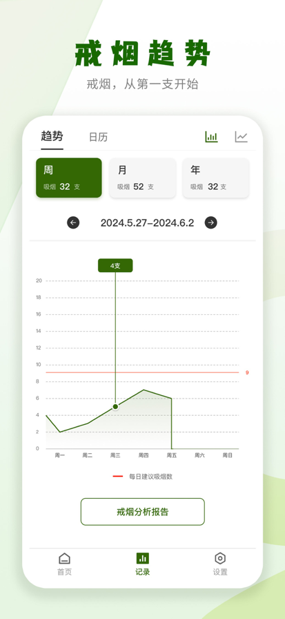 还在为戒烟苦恼?“戒烟小目标-戒烟有术”是一款科学戒烟助手,提供个性化戒烟计划、健康数据跟踪和实用小贴士。无论你是初次尝试还是多次失败,我们都能帮你逐步减少烟瘾,重获健康。下载即刻开始,迈向无烟人生! 高级订阅: •确认购买时,将向iTunes帐户收取费用 •订阅会自动续订,除非在当前期间结束前至少24小时关闭自动续订 •帐户将在当前期间结束前24小时内收取续订费用,并确定续订费用 •订阅可以由用户管理,并且可以在购买后转到用户的帐户设置来关闭自动续订 •如果提供免费试用期,任何未使用的部分将在用户购买该出版物的订阅时被没收(如果适用) 使用条款:https://www.freeprivacypolicy.com/live/56d9cc3a-5efd-42f0-806e-48e29d794f32 隐私政策:https://www.freeprivacypolicy.com/live/e8bd23ff-3387-45e0-a11c-a04ae98d9cf0