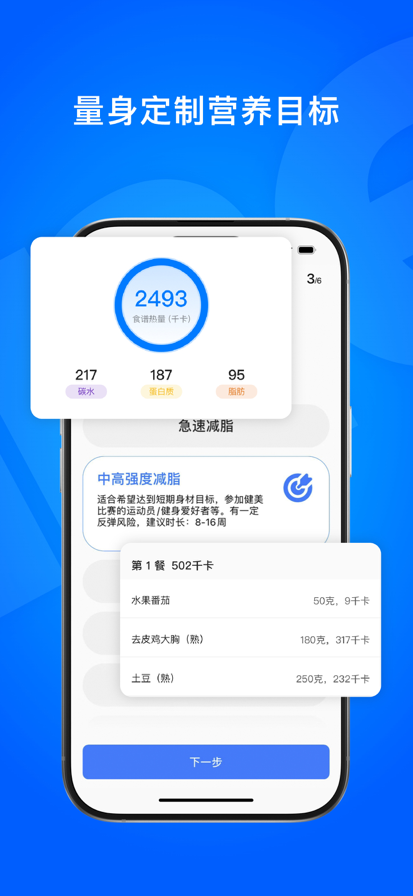 仅为健身爱好者、教练以及对专业度和健身目标实现有极高要求的人设计。一站式饮食记录与营养顾问功能,助您全方位达成目标。 精准数据库 软件内自带的海量营养数据库,来源于香港卫生署、美国农业局等顶级权威机构,为用户提供最专业、最全面的营养信息支持。 科学记录饮食 轻松、快速记录每日摄入的食物,所有的营养目标都一目了然,让执行饮食计划变得简单。 免费获取专业营养目标 由运动员和营养师共同打造的独特算法,根据您的健身目标、水平和生活习惯,为您免费量身定制一个运动员级别的营养摄入目标。让专业饮食触手可及,人人都能享受。 制作&分享计划 用户可以通过制作计划功能快速创建个性化的饮食计划,并将其分享给朋友或在社交媒体上发布。其他用户可以通过分享码直接使用该计划,轻松跟踪并执行。 打破传统的饮食计划执行方法 用户在执行通过软件生成的或他人分享的饮食计划时,可以根据自身或当日实际情况,灵活地替换、添加、删减食物或修改份量,抛弃一成不变的饮食记录方式,对饮食焦虑说不。