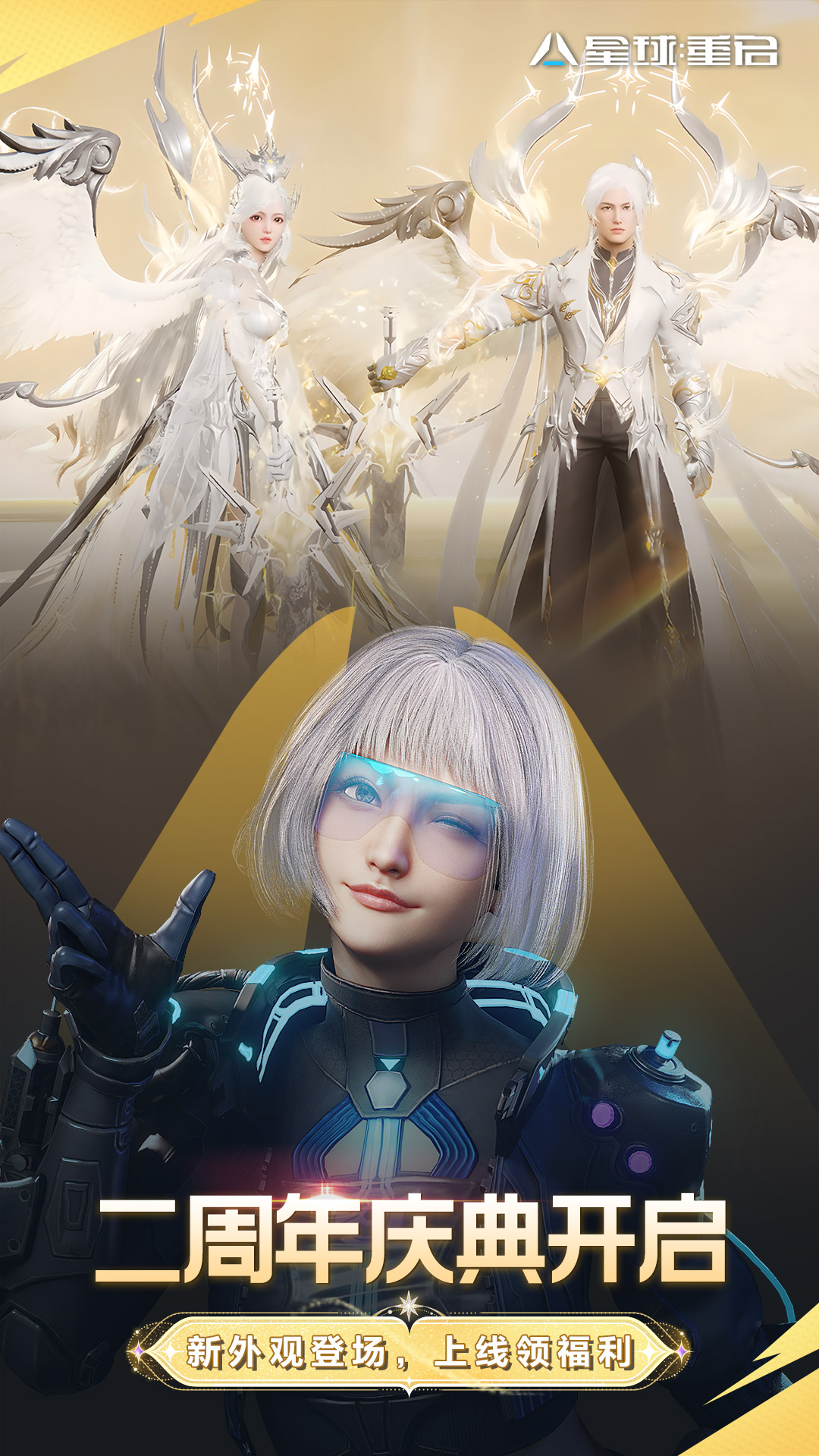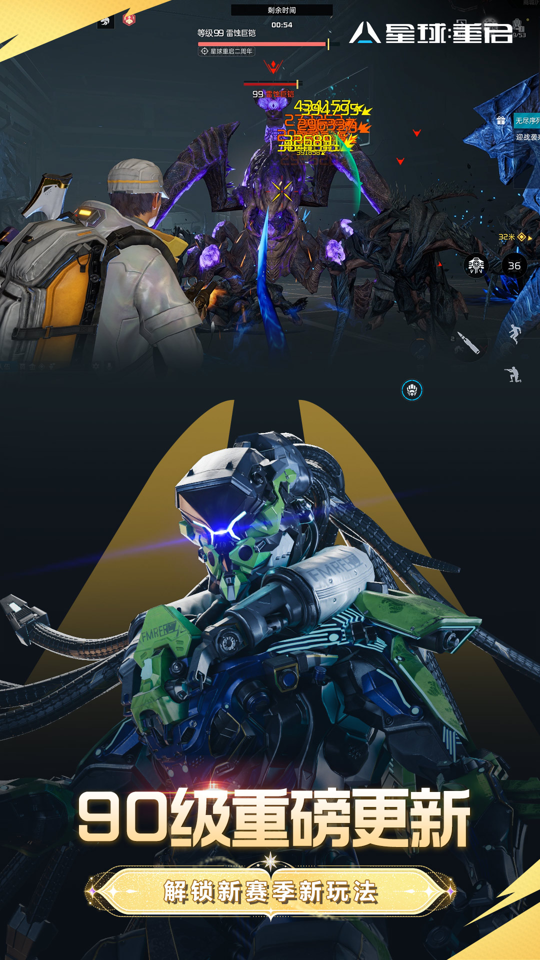 《星球:重启》二周年庆典和90级版本11月12日开启!返利服11月14日开放!<br>游戏首次打造历史充值返利活动,登录返利服「二载星途」最高可领20万晶核!参与活动有机会领SSR、限定外观、域天使升S级等奖励,还有自选时装、自选枪皮等星球投资凭证5100倍返利。<br>同时90级内容开放,全新赛季启动,新系统「光子军械」、新武器等助你生存战力飙升!新PVE和GVG玩法让你享受超爽割草和协力夺宝,更多惊喜等你体验!