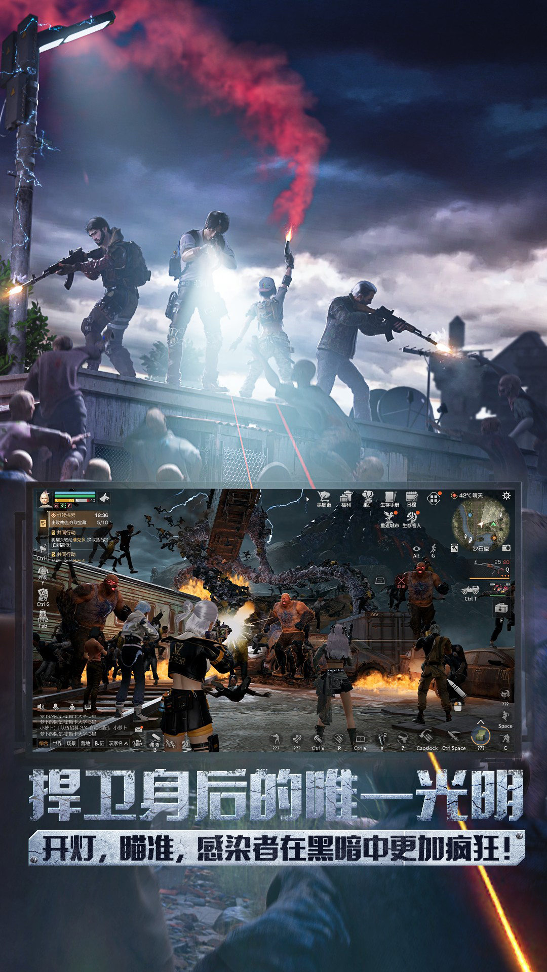 极夜已至,黑暗笼罩大陆——阴影之下的禁区不仅滋生着恐惧,更让游荡的感染潮在阴影中愈发狂躁!探索危机四伏的禁区,你必须依靠星火装置驱散黑暗,筑起临时工事,抵挡从阴影中袭来的夜行尸潮。深入探险队失联的绝境,搜寻他们遗留的关键资料与稀有的阿尔法物质,这将是破解极夜、揭示真相的唯一线索。存亡之际,希望的火种必须汇聚:将收集的物资运输回防线,与所有幸存者并肩,一砖一瓦共建照亮人类文明的光塔。而当毁灭一切的巨型感染潮如海啸般涌来,唯有坚守阵地,用血肉之躯守护这最后的希望之光,直至星火撕裂长夜,点燃黎明!<br><br>-保持希望和求生意志<br>废土后的世界已变陌生。饥饿、寒冷、怪物和未知企图的组织时刻威胁着玩家,请务必保持冷静,相信一切总有解决办法。<br><br>-利用一切活下去<br>怪物横行的城镇、荒废许久的矿区、瘴气弥漫的沼泽、寒冷的白树高地……探索废土每一处角落,收集和利用一切稀缺的生存资源。采集、狩猎、生火烹饪填饱肚子;动手制作药品、武器保护自己和伙伴。<br><br>-遭遇更多幸存者玩家<br>外出拾荒时,你会遇到形形色色的幸存者玩家。在这废土中,你需要时刻提防,守住你的生存物资;当然,你也可以跟他们分享食物、材料、弹药、和你的历险故事。<br><br>-建起废土里最后的”家”<br>结伴信赖的伙伴,寻找一处安宁之地扎营,一砖一瓦,共同建起属于你们之间的家。在漫漫冷夜,相聚于篝火处,相拥取暖。