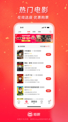 丝滑抢票上猫眼,优惠活动享不停! 【演出抢票超轻松】热门明星艺人演唱会、音乐节、电竞体育赛事、脱口秀、话剧音乐剧、休闲展览等演出订票so easy,信息精准推送不迷路~ 【影讯更新快又全】电影购票、选座超便捷,最新影视资讯统统有,票房口碑一眼知,还有明星见面会福利哟~ 【吃喝玩乐一站通】周边休闲玩乐美食团购全都有,热门景点、密室逃脱、美食、KTV等嗨不停。 意见建议联系我们: 官方新浪微博:@猫眼电影 @猫眼演出 官方微信:电影演出票 猫眼电影 猫眼电影演出玩乐 猫眼演出票 猫眼演出 官方网站:http://www.maoyan.com/ 全国客服热线:1010-5335
