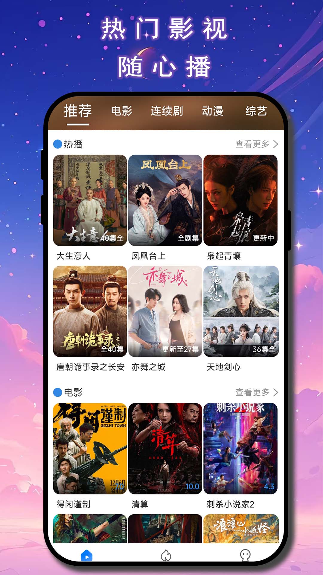 七七影视大全,追剧在线高清电影,一款万能追剧神器,热门高清电影电视剧短剧及热门综艺动漫视频大片免费看。<br>影视大全播放器聚合海量高清电影、电视剧、综艺、动漫、纪录片等各类影视节目,涵盖海量全网影视资源,免费美剧、韩剧、日剧、泰剧、TVB等全球影视资源实时更新;<br>精彩、免费、热门、海量大片海量影视剧看不停,实时更新。