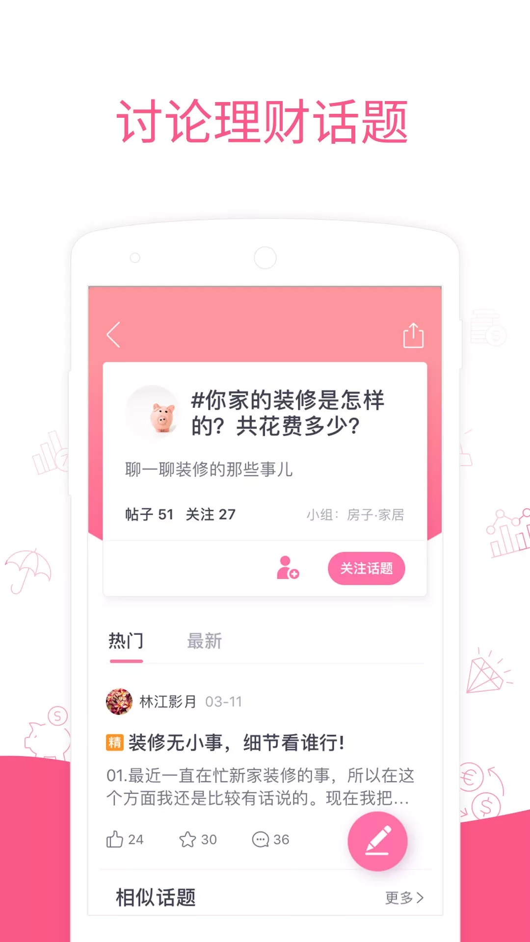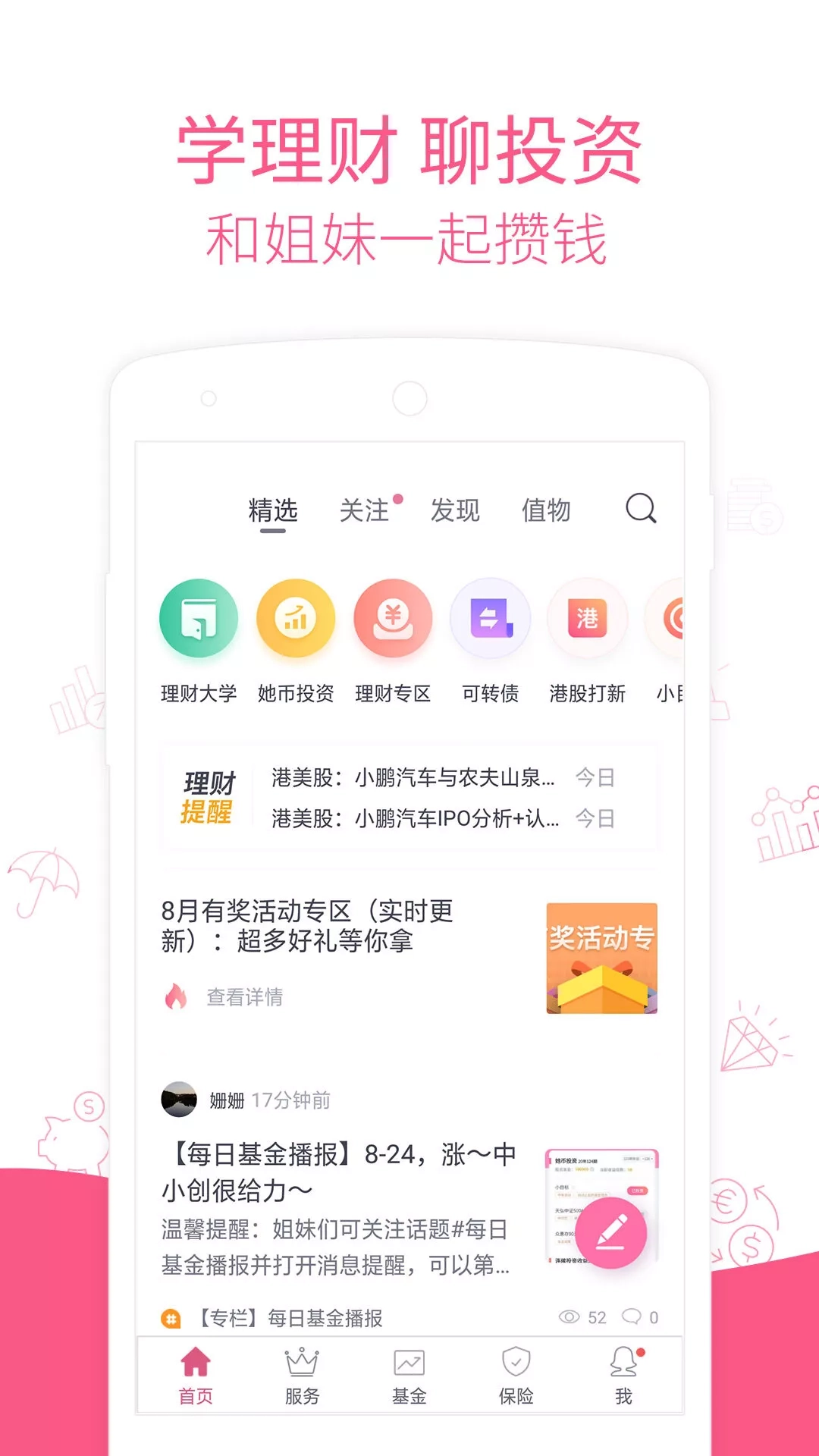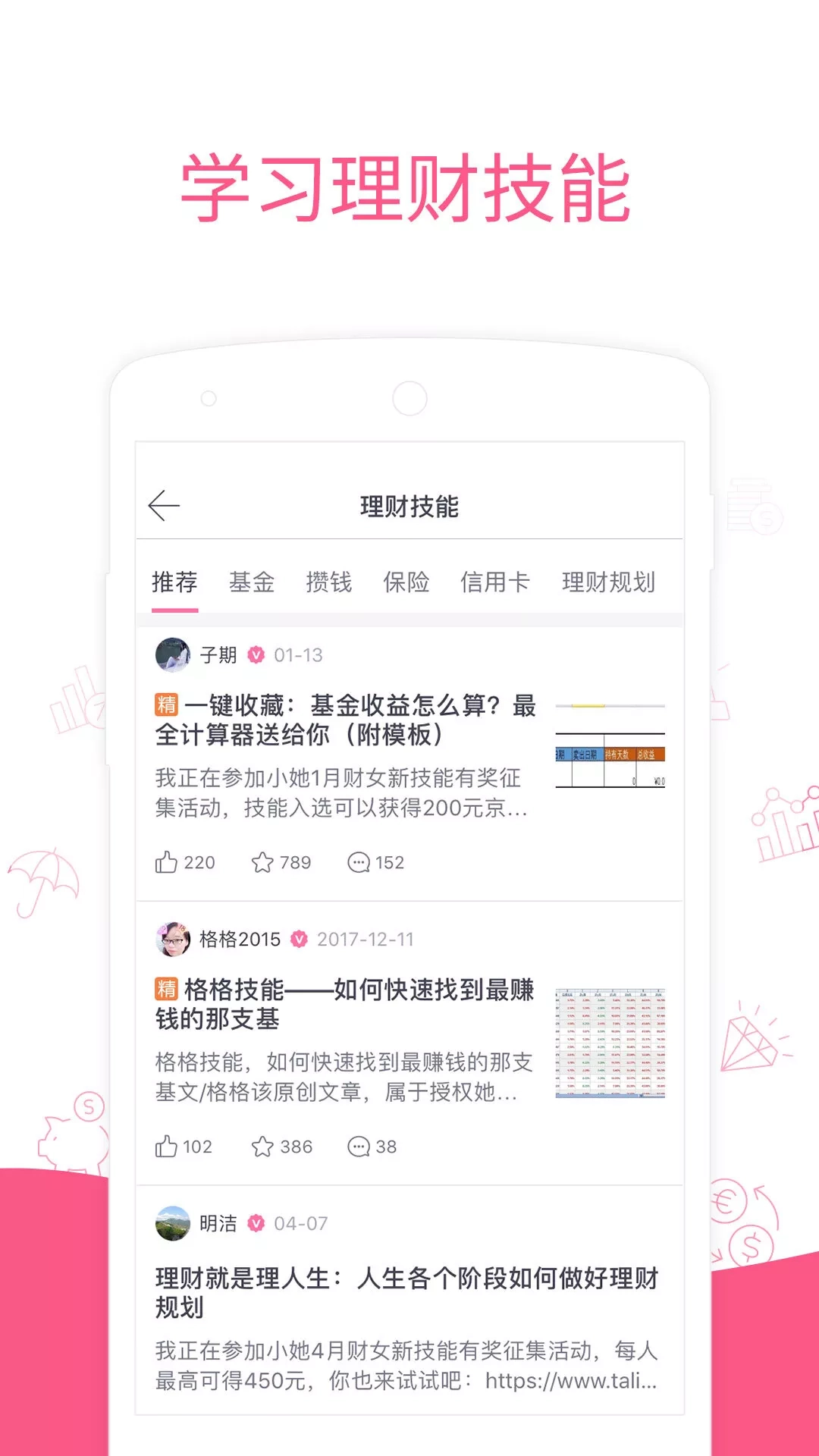 她理财app是专为女性打造的理财生活学习交流社区,提供通俗易懂的理财课和简单实用的理财小工具,帮助女性用户攒钱赚钱,实现财富增长,提高生活品质。 特色: 热辣新鲜的话题讨论: 单身女要不要婚前买房? 女生应该投资外表还是资产? 收入多高能买奢侈品? 好女该不该嫁凤凰男? 结婚后谁管钱?如何管钱越管越多? 人气火爆的小组: 【攒钱圆梦】人生第1个10万、一起攒钱去旅行、圆梦清单、攒钱打卡、万万没想到的攒钱方法… 【综合理财】1万元如何投资收益大化?月入3000如何理财?30岁前这样理财多赚百万… 【基金可以这样玩】小白如何从0开始买基金?如何定投能盈利30%?如何挑选好基金…… 【玩转信用卡】信用卡羊毛大全、积分换机票攻略、如何申请大额信用卡、如何提升芝麻信用… 【21天变财女】财女读书会、组团学英语、一起考证、健身打卡,遇到更好的自己… 通俗易懂的理财课: 理财入门 工资规划 家庭财务 低风险投资方法 贷款、公积金小科普 【联系我们】 微信公众号:她理财(talicai) 微博:@她理财 邮箱:talicai@talicai.com 问题反馈QQ群:465601017