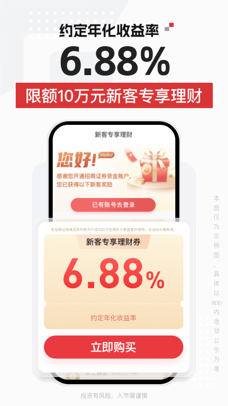 百年招商,值得信赖。招商证券APP作为炒股票、买基金,综合的财富管理服务平台,是广大用户的选择。股市有招,提供多种选股策略服务工具;理财有招,超3000只基金申购费率1折起,逾1200只基金0元申购。选择招商证券APP,招财有道。 【独家】新客开户享好礼 开户即送level2、6.88%新客专享理财、财管计划、神奇九转1年体验券、智能画线1年体验券、MACD专家一年体验券。 (新客户可下载最新版APP,在“招商证券APP-我的”参与活动,领取价值约千元新人福利。活动规则详见活动页面。本活动自2022年1月6日起至下线前长期有效,招商证券有权单方面调整下线时间。) 【工具】神奇九转、智能画线等选股辅助工具,帮助发现走势拐点 【选股】智能选股,选定指标简单两步轻松选股 【升级】招财号全站升级,轻松获取一手及时资讯 【改版】全新首页,信息模块化整合,更聚焦 【新增】指数赛道,选对赛道,财富加速 【升级】智能定投,轻松设置,高效投资 【新增】工资理财,稳中求进,积少成多,盈亏每日可见 股市有风险,入市需谨慎。