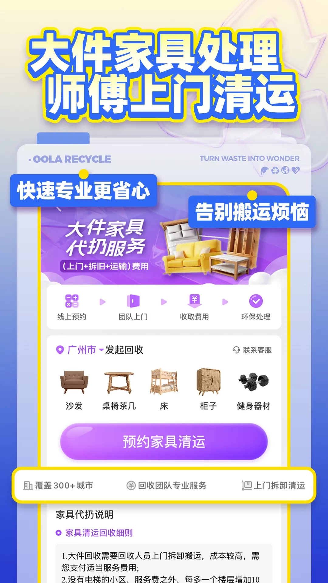 家中闲置的旧衣、书籍、数码产品、家电、家具等物品,噢啦回收 APP 全都能帮您轻松环保处理!一键下单,快递免费上门取件,让您足不出户就能清空闲置物品。对于大件家具,更是提供专业拆运服务,彻底解决搬运难题。 【核心亮点】 • 旧衣现金回收,按公斤结算。 • 极速上门回收 :最快2 小时内上门服务,旧物回收高效便捷,换钱换好礼 ,支持公益!解决旧物堆积烦恼,变废为宝。 • 高价回收家电 & 电动车 :线上精准估价,家电享受免费上门拆机服务,现场当面结算,交易安心。 • 大件家具无忧处理 :沙发、床垫等大件家具,专业师傅上门清理搬运,快速省心,轻松解决搬运难题。 • 墨盒回收高价回收:闲置的打印机墨盒也能回收!一键估价,轻松回收,共同助力环保。 【环保公益理念】 噢啦回收将您的闲置物品交由合法合规的处理机构进行环保处理,以实际行动助力减碳排放,替代传统物资捐赠方式,同时支持爱心项目,让每一次回收都充满意义,实现闲置物品的价值最大化。