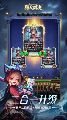《狼人对决》是一款策略卡牌对战手游,在这里,你是一名操纵战场局势的策术师,使用各具特色的英雄卡牌进行对战。七大种族,一百多名英雄,六人成局,战斗一触即发……选择强力的英雄,灵活变换阵容和站位,施展你的策略,掌控瞬息万变的战局,在一场场对决中脱颖而出吧! 游戏特色: 【创新自走棋】 有别于传统自走棋的复杂机制,商店采取自动升级,棋子轻松合成! 【策略致胜】 合理搭配英雄与棋子阵容,灵活变换站位,甚至能击败比自己强大的敌人。 【轻松畅玩】 竖屏游戏界面,单局对战10分钟,随时随地上分! 【简单上手】 0门槛上手操作,无装备,无羁绊,就是战! 【多样体验】 解锁更高等级,还有多种趣味玩法等你探索!