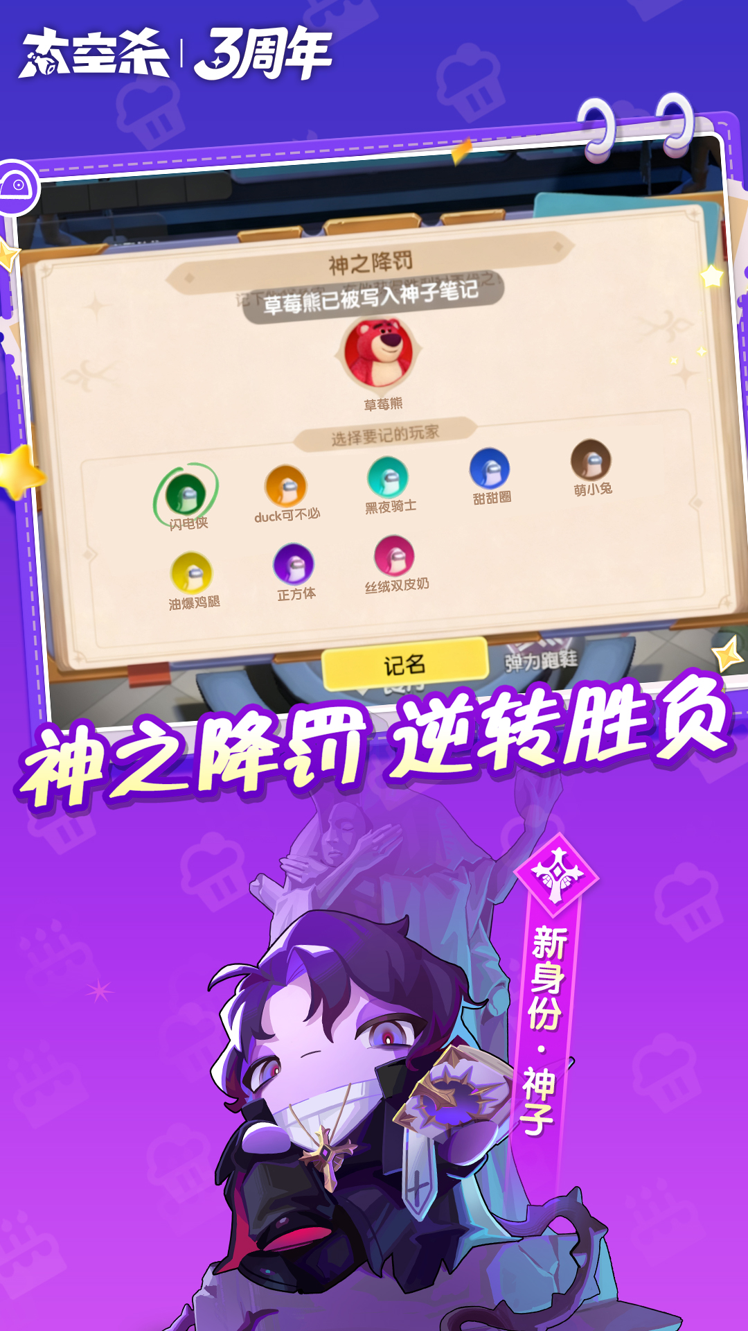《太空杀》是一款多人社交推理手游,在这里,你可能会收获一群黑心伙伴,一些爆笑推理,一场刺激追逃......总之,游戏中不仅有轻松欢乐的玩法,更聚集了超过2亿的有趣灵魂,快来一局找到你的游戏搭子吧!<br><br>游戏支持4-15位玩家一起玩,内置经典推理、大逃杀、躲猫猫等海量新奇有趣的多人社交玩法,在还原经典玩法的基础上,为玩家带来多元化的刺激体验。在这里你将化身为太空人或太空鲨,和数十位玩家同台竞技!<br><br>经典推理模式中,你将被随机分配到船员、内鬼或中立阵营,通过淘汰其他阵营的玩家或完成任务达成获胜条件。三大阵营中的超多身份各自拥有独特的能力,利用技能主宰比赛! <br><br>全新的大逃杀模式中,你将和你的两位队友并肩作战,与其他4个小队展开角逐,合理利用远程、近战攻击、防御护盾、以及身份特有技能,存活下来,成为幸存的胜利者!选择正面硬刚还是苟住吃鸡,由你决定,快来开启惊险刺激的竞技之旅!<br><br>【游戏特色】<br>1.经典太空杀玩法,体验升级<br>合作与背叛,是伙伴还是内鬼,给你原汁原味的太空杀经典体验;还有5v5团队对抗、躲猫猫等玩法,带来更丰富的游戏乐趣!千万年轻人的全新选择,速来加入!<br><br>2.海量身份,畅享全神乱斗的心跳对决 <br>一款内置超40个身份的太空杀游戏!除了船员、内鬼、警长三大经典角色,更有小丑、孙悟空、噬魂怪等三大阵营的众多角色等你来体验!让每一局游戏都充满悬念,充分展现你的推理才能。<br><br>3.特色地图&剧本工坊,创造无限可能<br>太空飞船、深海潜龙、火星基地、空中飞艇等超多地图,各具特色!更有超低门槛的关卡编辑器,随心所欲创作你的专属地图和规则,随时随地来一场属于你和好友专属的情景式烧脑派对!<br><br>4.多人社交利器,推理交友两不误<br>随时随地开启你们的专属社交派对!多地图、多模式、多角色任选!总有一个适合你们,是开启一场推理大戏,还是欢乐组局?由你来定。