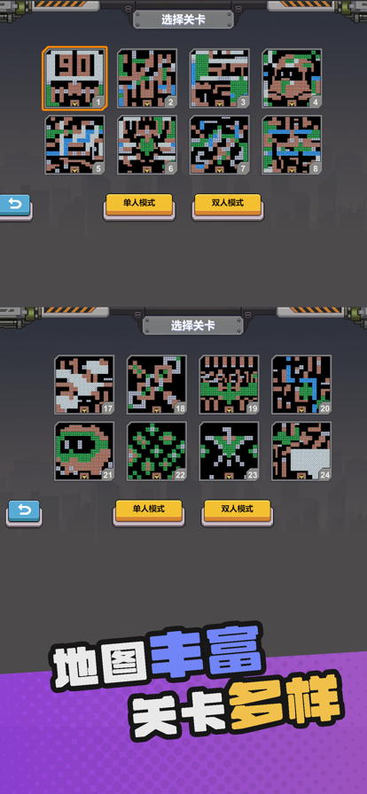 重温经典,全新对决!《TANK 1990》带你回到那个充满激情的坦克战场。 【熟悉的道具系统】 ◎ 收集手枪道具,立刻升级为满级火力,瞬间扭转战局。 ◎ 获得船道具,即可自由穿越河流,并能额外抵挡一次伤害,策略性大幅提升。 【海量关卡与模式】 ◎ 包含28种各具特色的模式。 ◎ 敌人也会抢夺道具,战场局势瞬息万变! ◎ 经典的过河、削草等元素悉数还原,带来原汁原味的怀旧体验。 【双人合作模式】 ◎ 特别支持双人合作,与好友并肩作战,制定战术,共同保卫基地,享受默契配合的乐趣。 【地图丰富不重样】 ◎ 包含数百张精心设计的地图,关卡丰富多变,每一次冒险都充满新鲜感。 【自定义操控】 ◎ 可根据个人习惯随心调节操控方式,享受指哪打哪、行云流水般的移动射击快感。
