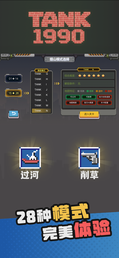 还记得小时玩的坦克大战1990吗,《超级坦克大战1990》在优化其普通模式的基础上,新增了更加华丽炫酷的无限模式和超级模式,还加入了更加刺激、更加困难的挑战模式,各种超难的关卡等着你来挑战! ·无限模式 该模式下玩家没有总部,而改为第三方势力的总部,双方只要一方先找到并消灭该总部即可获胜。 关卡数无限制,武器伤害无限制,敌人ai无限制。不仅你可以暴走,敌人也可以暴走的。 每关必有初始五星隐藏在砖块下面,注意查收哦。 ·超级模式 关卡初始会送大量五星和随机道具,让你很快提升武器,武器最高可达13级。随着武器的升级,坦克的移动速度和子弹的杀伤力会大幅提升,该模式加入了更加华丽的特效:拖尾、粒子系统、震屏、变色等,给玩家超爽的视觉体验! ·普通模式 在坦克大战1990的基础上,优化了摇杆控制及渲染效率,使玩家操作及游戏画面更加流畅。 当你吃够三个五星后,暴走的你,即使一百多个普通关卡你也根本停不下来。 ·挑战模式 各种超乎想象的超难关卡,比如穿越火线、控制子弹、boss旋转坦克、炸弹超人、坚持1分钟、幸运道具、boss永不放弃等,一定会让你有不同寻常的虐心体验。 赶紧来挑战吧,在消灭掉最后的大boss前,一定要永不放弃啊! ----------------------------------------- 有兴趣的朋友,欢迎加入QQ交流群:95850081