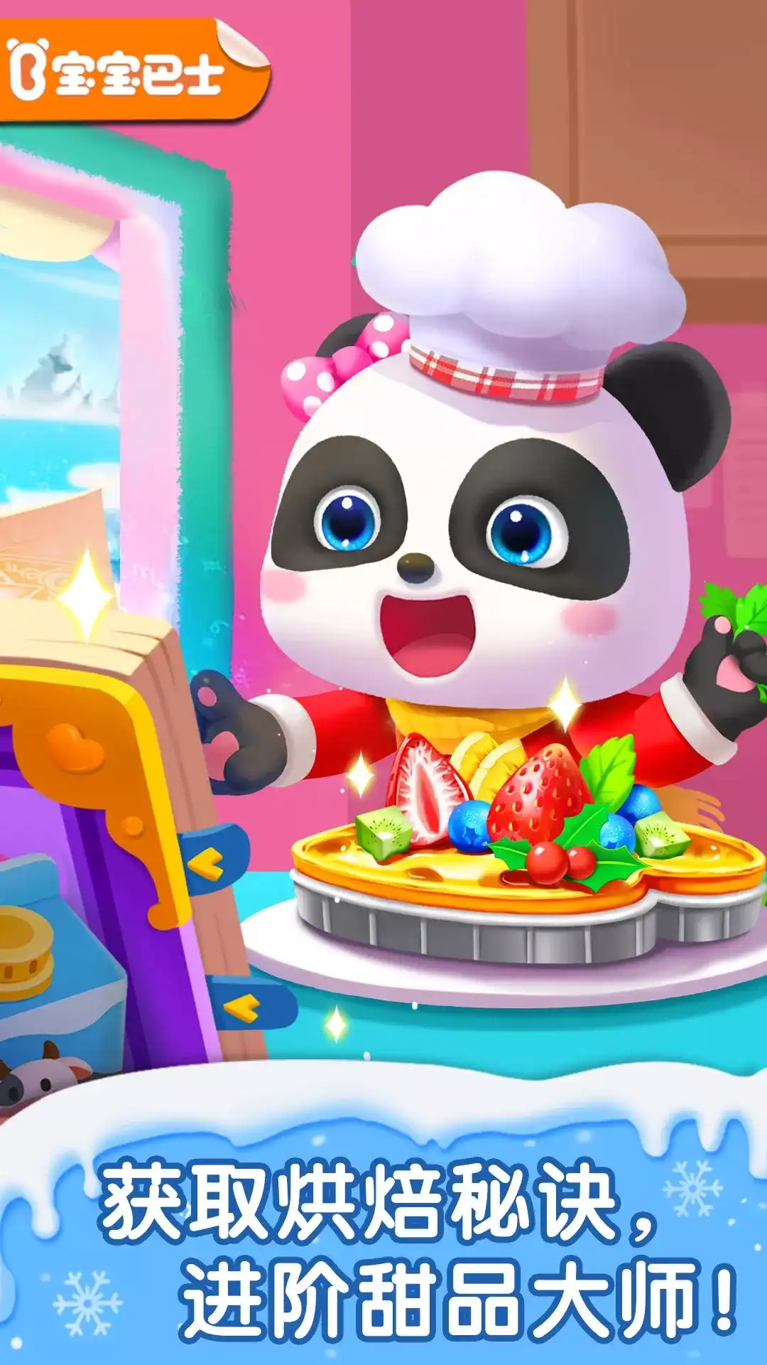益智互动APP【宝宝甜品店】引进新甜品啦:五彩斑斓的彩虹拉丝吐司、造型别致的热气球冰淇淋、口味香甜的奶油蛋糕、清凉爽口的彩虹冰棒……更有有趣的厨艺PK赛,等你来挑战! 宝宝快打开益智互动APP【宝宝甜品店】,变身小小甜品师,DIY热门甜品,参加趣味PK,解锁更多食材与道具! 制作彩虹拉丝吐司,锻炼动手能力 制作七彩芝士是关键,宝宝来试试:芝士削成芝士碎,均分六分放入小碗中,滴加不同色素,认真搅拌,芝士“染色”完成!最后将五彩斑斓的芝士逐一撒在准备好的吐司上。 煎吐司同样考验宝宝的“技术”:等到锅里的油热时,将夹着芝士的两片吐司,轻轻下锅,注意一面金黄时,及时翻面。出锅装盘,用小刀轻轻划开吐司,就可以“拉”出彩虹啦! 设计动物手工糖,激发创造力 粘乎乎的糖稀是制作糖果的常用原材料,如果宝宝想制作五彩动物糖,在糖稀中加入粉色、蓝色等色素,搅拌均匀,再倒入兔子、狮子等形状的模具里进行“塑形”就可以啦。 咦,动物糖好像还缺点什么?宝宝发挥创造力,用印有五官的贴纸,给动物糖设计一些Q萌表情:水灵灵大眼睛+大笑的嘴巴;“樱桃”小嘴……大功告成! 趣味挑战互动,多重益智考验 制作甜品需要不少水果,挑选水果也有讲究。快来匹配对手进行摘水果挑战吧,在这过程中宝宝需要快速反应,若摘到烂果或被蜜蜂干扰等,就会被对手赶超哦。 准确找到食物也是甜品师的附加技能,宝宝需要找到跟盘子里相同的水果,要注意传送带是会移动的,错过了就算失败,而且有些食物长得很相似,别被迷惑了! 宝宝还想制作更多甜品?快打开【宝宝甜品店】,获取甜品烘焙大全,打造高人气甜品店。 产品特色 1、16种热门甜品,激发宝宝的兴趣,了解不同甜品的制作方法; 2、别样的益智方式,让宝宝体验甜品师的工作,认知不同的食材; 3、有趣的益智互动,让宝宝在使用丰富道具时,提升多项能力。 【自动续费】 为了给用户提供更优质的产品体验,我们在会员订阅中增加了应用内自动续费服务,家长们在支付时可自行选择是否开通应用内自动续费。若对自动续费业务或者退款有疑问,您可以直接咨询应用内客服,客服联系方式【打开应用】-【家长中心】-【帮助反馈】。 宝宝巴士BabyBus是专注打造儿童启蒙数字产品的原创品牌。宝宝巴士秉承“快乐启蒙”的理念,用奇妙有趣的方式,为儿童量身定制以“好听国学故事、好看儿歌动画、好玩互动APP”为特征的海量数字启蒙内容,让孩子趣味认知、感受“真、善、美”。 欢迎联系 微博:@宝宝巴士 官网:http://www.babybus.com 邮箱:cn@babybus.com