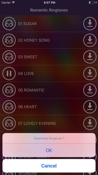 Romantic Ringtones is amazing free application, where you can enjoy listening to the best melodies on your iPhone! Get this free sound app that can easily be set as ringtone, contact, notification or alarm. If you don´t know how to set a custom ringtone on your iPhone you can: 1. Open the Romantic Ringtones app 2. Click the music icon to listen to a song 3. Tap on the download button 4. Click the settings button then OK to watch our tutorial video. How easy is that? The latest tunes, great music, superior sound quality, all in this incredible free application. There are a lot of music styles: Pop, Electronica, Mainstream, Modern and sound that can cheer you up. Now your friends will understand when you don’t pick up the phone immediately because you want to enjoy listening to the best ringtone melodies a little bit longer. The latest tunes, great music, superior sound quality, all in this incredible free application. For the best results you need to be online but our app works offline as well and you can have fun with your friends and family. Romantic Ringtones was tested and it is compatible with most iPhone and iOS versions like: iPhone 4, iPhone 5, iPhone 5c, iPhone 5s, iPhone 6, iPhone 6 Plus, iPhone 6s, iPhone 6s Plus, iPhone SE, iPhone 7, iPhone 7 Plus.
