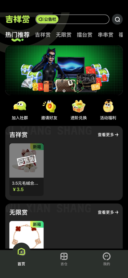 ·吉祥价到 绝赞热品福利好价 吉祥价到,轻松热爱!潮玩好价超划算,会员可享专属权益,优惠好礼叠加不止 ·正品保障 赏物有道 严选IP与供应商,自有线下仓库,专人专项核验,正版好物不负所爱 ·潮玩品类全覆盖 吉祥赏致力于打造全维度、高品质的收藏品生态,涵盖热门动漫IP、高端限量版模型、盲盒系列、原创设计师、GK雕像等专业级收藏品类,满足从入门爱好者到资深藏家的多元需求 ·趣味化购物体验 擂台&串串模式,新机制、新挑战、新朋友,玩法多样,乐趣加倍! 突破单一,解锁无限可能,从单人探索到组队狂欢,超高自由度,每一次体验都是新鲜冒险! ·概率公证,公平公开 吉祥赏核心价值观——诚心诚意,诚信诚实 概率公证检测报告完整公开可查,给您最真的体验!