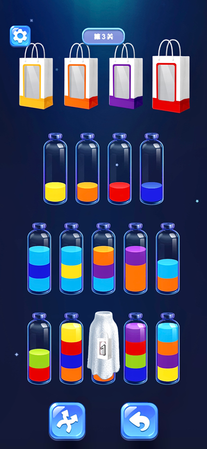 你能进行颜色拼接吗? 玩法: - 轻击水瓶即可开始 - 只有相同颜色且有足够空间才能开始倒沙 - 您可使用多样的道具 这是一款轻松解压的产品,快来锻炼你的思维能力吧!