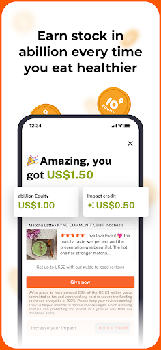 在 abillion,我们的使命是帮助 十亿人 吃得更健康。我们创建了全球最大的健康食品和产品测评平台,帮助您在全球超过 120 万家餐厅和 12 万个食品品牌中找到最佳选择。最棒的是,我们为您的健康饮食买单!全球超过 2000 万人已经统一到我们共同的使命之下,我们的用户仅通过食用和测评更健康的纯素产品,就赚取了超过 540 万美元的收益。<br><br>以下是您将获得的:<br><br>来自 100 多个国家/地区的 abillion 用户测评过的 130 万家餐厅、酒店和品牌的大量折扣和独家优惠<br><br>访问全球数百万条食品和产品测评<br><br>每次发布测评可获得 1 美元的 abillion 股权<br><br>您邀请的每位朋友加入 abillion,您将获得 20 美元的 abillion 股权。他们也将获得 20 美元!<br><br>参与我们的每周影响力挑战 (Weekly Impact Challenge)<br><br>我们将帮助您找到下一餐美食。更棒的是,当您分享照片并发布测评时,您将拥有我们这家卓越公司的股份。您的测评将帮助他人找到更好的选择和体验,并影响企业做得更好。<br><br>计划举办活动、主持研讨会,或有东西要卖?在 abillion 免费上架,并且只在售出时支付 10% 的费用。开始在全球第一个专注于让人们更健康、地球更健康的市场销售吧。<br><br>感谢您的加入!