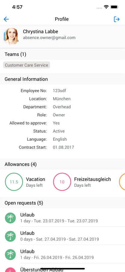 With the absence.io mobile app you can easily manage your absences and track your time - all on your mobile device! The mobile app offers the core functions of absence management and time tracking of the absence.io software for all users to provide an efficient solution for daily use. Absence Management: - Easy planning of your absences and vacation days - Overview of all absences of your team in the calendar - Direct approval of absence requests (only for HR) - Easy access to the dashboard (only for HR) Time Tracking: - Start & stop time clock with just one click - (Over-)time recording in real time - Easily enter, edit and delete time entries (only for HR) Just a head’s up - our app only works with an existing absence.io account. Sign up now at absence.io to test our software and app! The mobile app is not our terminal app. Do you have any questions about absence.io or want to give us feedback? Then feel free to drop us a message at hello@absence.io - we are looking forward to hearing from you!