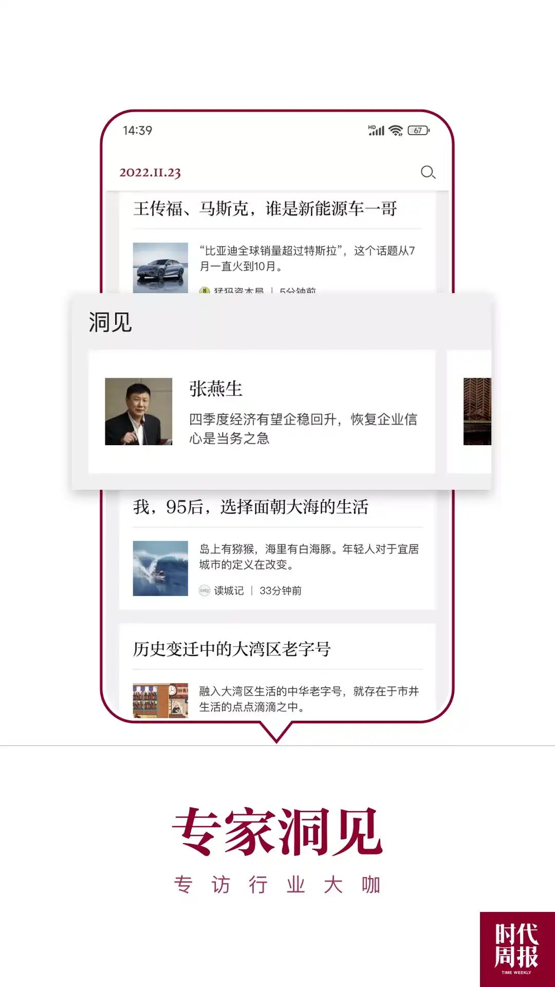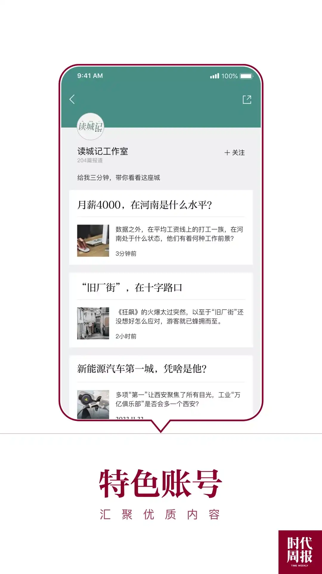 时代周报客户端是《时代周报》的官方手机端新闻资讯平台,主打政经、财经、产经原创报道,以中国财智人士和白领阶层为主要用户群,用专业视角解读中国资本趋势和产业变革,关注全球经济和金融投资动态、最新产业科技资讯,以及文化生活风尚。 时代周报客户端全新改版!带给你有高度、有深度、有锐度的独家专业财经报道。 【首页精选】 每日推荐有价值的财经资讯,大健康、消费、地产、科技、金融等各领域重要消息尽在掌握。 数十位资深记者,深度解读财经要闻;超过100家合作媒体,多角度剖析财经事件。 【特色账号】 《读城记工作室》《19号商研社》《猛犸资本局》等多个特色主题账号汇集优质原创内容,洞察地区及产业发展风向,关注账号即可随时获取感兴趣的财经内容资讯。 【企业资讯】 国内外知名企业资讯聚合,公司发展脉络一目了然。 【专家洞见】 公司高管、专业学者等行业大咖专访,从权威观点中了解经济形势变化。 【功能简洁】 专注为用户提供精选、深度的财经资讯,功能简单实用。 通过电子报、专题等功能为用户展示各类新闻;支持用户收藏资讯、专题,方便后续回顾;提供微信、QQ、微博等多种渠道,快速与好友分享优质好文。 如果您想了解更多内容,欢迎联系我们 官方网站:www.time-weekly.com 微博:@时代周报 微信公号:timeweekly