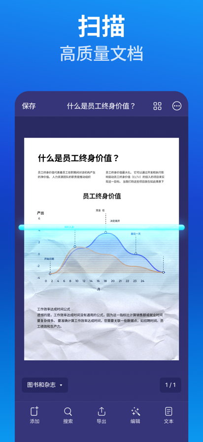 Scanner Pro 系您存储文档的选择!合同、收据、身份证、电子书, 使用您的苹果设备一扫描即将其转存为高质量专业电子档,方便随时随地共享。 “我不得不承认,Scanner Pro 是我的真爱。” – CNET,Rick Broida “转换并存储繁杂纸质文档,Scanner Pro 正合我意。” – 今日美国,Marc Saltzman 文档扫描,大道至简。几秒内即将诸多纸质文档转成电子档,稍后阅读,信手拈来。凭借专业图像处理技术,Scanner Pro 能自动探测边缘,调整角度和纠正失真,移除阴影,打造专业文档体验。共享、邮件、网盘,您的扫描文档令人赏心悦目。 TEXT VISION(光字符识别) 扫描文档转成文字,阅读、复制、导出至其他应用。Scanner Pro 提供超过25种语言的本地化:加泰罗尼亚语,克罗地亚语,简体中文,繁体中文,捷克语,丹麦语,荷兰语,英语,爱沙尼亚语,芬兰语,法语,德语,希腊语,匈牙利语,意大利语,日语,拉丁语,挪威语,波兰语,葡萄牙语,罗马尼亚语,俄语,西班牙语,瑞典语, 他加禄语,土耳其语和乌克兰语。 增强型中文光学字符识别 中文+组合包含英语、简体中文、繁体中文,识别更快速更精准。 全文搜索 全文搜索包括标题在内的扫描文档文本,极速定位所需内容。 智能工作流程 将工作流程自动化,一键即可处理多项操作。首先,选择操作:重命名文档、发送邮件、上传网盘、本地保存。其次,点触一次 Scanner Pro 即完成全部操作,您就有更多时间完成其他工作。 自动上传网盘 Scanner Pro 自动将扫描文档上传到主流网盘,或其他支持 WebDAV 协议的网盘。 共享扫描文档 免费无限共享文档。通过邮件发送扫描文档,也可将其导出至照片,或在其他应用程序打开。您还可打印文档,通过传真发送到世界各地。 保护 PDF 使用密码加密文档:密码、面容 ID。共享文档无需担心隐私泄露。 iCloud 同步 出门在外亦可随时处理文档。通过其他设备也能获取通过 iPhone、iPad 扫描的文档。 编辑、保存、再编辑 Scanner Pro 的特色在于,它能保存扫描文档的源文档。这意味着,您能重新处理文档,编辑、批注,任君选择。 您有意见或建议?请访问 http://readdle.com/contact 隐私政策:https://readdle.com/scannerpro/legal/privacy 服务条款:https://readdle.com/scannerpro/legal/terms