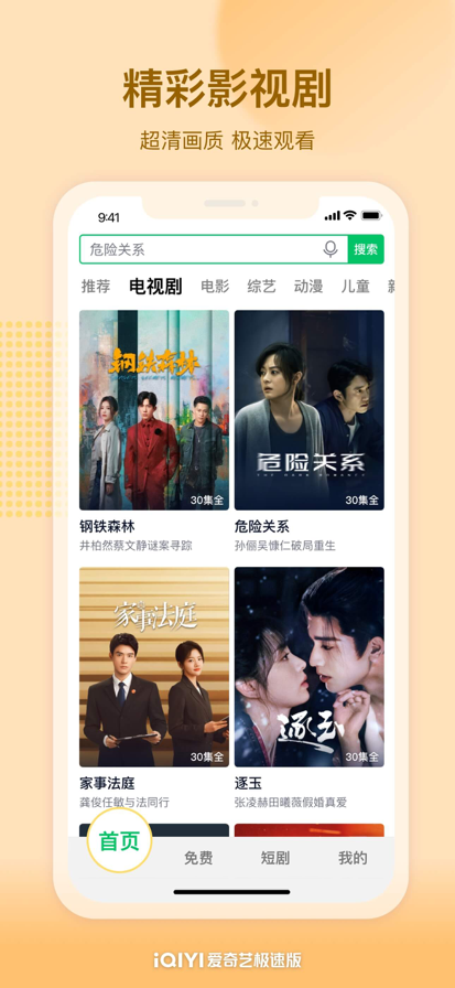 爱奇艺官方出品的APP,覆盖爱奇艺全部内容,功能简洁,内存占用少,会员更实惠 【更轻】安装包小,内存占用少,任何手机都能轻松运行 【更快】启动速度快,使用简单,视频播放更加流畅 【内容全】畅享3万多部热门影视和综艺,还有上万部短剧随心看 【更实惠】高性价比的基础会员,内容全,价格低,有广告 【热播剧集】 《八千里路云和月》王阳万茜共抗敌寇 《冰湖重生》诸葛玥楚乔圆意难平 《钢铁森林》井柏然蔡文静谜案寻踪 《家事法庭》龚俊任敏与法同行 【超燃电影】 《隐市英雄》彭禺厶笑闹上海滩 《追恶》释小龙血拼人贩黑帮 《疯狂动物城2》狐兔组合再破大案 《盟约》吉伦哈尔演绎阿富汗战争 【新鲜综艺】 《哈哈哈哈哈第6季》五哈第6季鹿晗回归 《今夜喜友秀》大张伟付航深夜喜剧秀 《宇宙闪烁请注意》高能量熟人局 《我们的爸爸第2季》围观爸爸们的带娃日常 【热门短剧】 《自由天堂 》落魄孤女被大灰狼囚禁 《宫墙许良人》太监老公变真男人? 《偏宠》 隐婚影星遇白月光挑衅 《唐诡奇谭之九重楼》苏无名孤身被囚遇死局 《心动上上签 》冒充"神婆"潜入豪门 《董事长儿子下基层2》富二代卧底干翻蛀虫! 《难缠》步步为营入侵她的生活 【温馨提示】 如遇到问题,请打开爱奇艺极速版APP-我的-帮助与反馈,点击页面下方【意见反馈】进行反馈。若您的问题仍末解决,可在"我的-关于我们-联系我们- 在线客服" 进一步反馈或直接拨打客服电话(400-923-7171),您的反馈是对我们改善服务很大的帮助! 【自动续费基础会员】 -- 基础会员权益:仅可在爱奇艺极速版APP中使用,海量内容都能直接看,畅享高清1080p画质,观看视频内容前或过程中有广告。 -- 订阅周期:1个月(基础会员连续包月产品),12个月(基础会员连续包年产品)。 -- 订阅价格:以iAP申请信息为准,例如连续包月产品每月15元,连续包年产品每年178元。 -- 付款:用户确认购买并付款后记入iTunes账户。 -- 取消续订:如需取消续订,请在当前订阅周期到期前24小时以前,手动在iTunes/Apple ID设置管理中关闭自动续订功能。 -- 续订:苹果iTunes账户会在到期前24小时内扣费,扣费成功后订阅周期顺延一个订阅周期。 -- 隐私政策: http://www.iqiyi.com/common/privateh5.html -- 用户协议: http://www.iqiyi.com/common/loginProtocol.html -- 自动续费会员服务协议: http://vip.iqiyi.com/autorenewagreement.html 【自动续费黄金会员】 -- 黄金会员权益:享多端观影权益(手机、电脑、平板电脑、车载端、智能家居),同时含海量内容抢先看、广告特权、帧绮映画4K画质、杜比音效等豪华特权,以及其他增值权益。 -- 订阅周期:1个月(黄金会员连续包月产品),3个月(黄金会员连续包季产品),12个月(黄金会员连续包年产品)。 -- 订阅价格:以iAP申请信息为准,例如连续包月产品每月25元,连续包季产品每季68元,连续包年产品每年238元。 -- 付款:用户确认购买并付款后记入iTunes账户。 -- 取消续订:如需取消续订,请在当前订阅周期到期前24小时以前,手动在iTunes/Apple ID设置管理中关闭自动续订功能。 -- 续订:苹果iTunes账户会在到期前24小时内扣费,扣费成功后订阅周期顺延一个订阅周期。 -- 隐私政策: http://www.iqiyi.com/common/privateh5.html -- 用户协议: http://www.iqiyi.com/common/loginProtocol.html -- 自动续费会员服务协议: http://vip.iqiyi.com/autorenewagreement.html 【自动续费白金会员】 -- 白金会员权益:享大屏+小屏观影权益(手机、电脑、平板电脑、电视、车载端、智能家居),同时含海量内容抢先看、广告特权、帧绮映画4K画质等豪华特权,以及其他增值权益。 -- 订阅周期:1个月(白金会员连续包月产品),3个月(白金会员连续包季产品),12个月(白金会员连续包年产品)。 -- 订阅价格:以iAP申请信息为准,例如连续包月产品每月35元,连续包季产品每季98元,连续包年产品每年348元。 -- 付款:用户确认购买并付款后记入iTunes账户。 -- 取消续订:如需取消续订,请在当前订阅周期到期前24小时以前,手动在iTunes/Apple ID设置管理中关闭自动续订功能。 -- 续订:苹果iTunes账户会在到期前24小时内扣费,扣费成功后订阅周期顺延一个订阅周期。 -- 隐私政策: http://www.iqiyi.com/common/privateh5.html -- 用户协议: http://www.iqiyi.com/common/loginProtocol.html -- 自动续费会员服务协议: http://vip.iqiyi.com/autorenewagreement.html 【自动续费星钻会员】 -- 星钻会员权益:畅享七端全屏通(手机、电脑、平板电脑、电视、VR、车载端、智能家居),多会员权益(爱体育会员、VR会员),同时含海量内容抢先看、广告特权、帧绮映画4K画质、杜比音效等豪华特权,以及其他增值权益。 -- 订阅周期:1个月(星钻会员连续包月产品),3个月(星钻会员连续包季产品),12个月(星钻连续包年产品) -- 订阅价格:以iAP申请信息为准,例如连续包月产品为每月45元,连续包季产品每季118元,连续包年每年428元。 -- 付款:用户确认购买并付款后计入iTunes账户。 -- 取消续订:如需取消续订,请在当前订阅周期到期前24小时以前,手动在iTunes/Apple ID设置管理中关闭自动续费功能。 -- 续订:苹果iTunes账户会在到期前24小时内扣费,扣费成功后订阅周期顺延一个订阅周期。 -- 隐私政策: http://www.iqiyi.com/common/privateh5.html -- 用户协议: http://www.iqiyi.com/common/loginProtocol.html -- 自动续费会员服务协议: http://vip.iqiyi.com/autorenewagreement.html