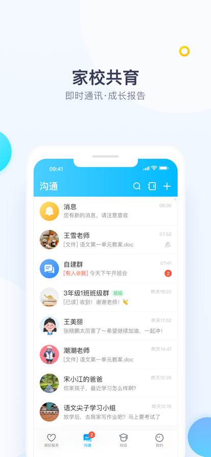 校信是面向新时代的智慧校园建设,专为学校打造的移动化数字校园一站式服务平台,充分融合智能语音核心技术、计算机信息技术、智能移动终端技术。校信通过移动端应用的产品形态,帮助学校建立起以即时通讯、移动办公为主线的集家校沟通、教师服务于一体的校园移动应用服务平台,构建云端移动数字校园生态系统。产品集即时家校沟通通讯、统一应用入口、移动办公、教师服务等功能于一体,为各级各类学校、一线教师、广大学生与家长构筑了学习、交流、分享的网络空间与实践社群,通过信息化手段促进教师教学方式与沟通方式的变革,促进教与学、教与教、学与学的全面互动。 校信全面涵盖教育体系下的应用,同时提供专业且完善的业务支持,内置即时聊天、班级圈、作业等应用。校信通过即时通讯服务打造便捷的家校沟通环境;通过班级圈实现资源的动态分享、优质推荐、成果展示,形成以教师、学生、家长为核心的家校互动社区,更有个人空间、班级空间展示,帮助学校快速建设移动端校园平台;同时对接开放式应用商店,整合内部应用及第三方应用,汇聚家校沟通、办公管理、在线学习、数字资源、教务教学等丰富的教育轻应用,提供海量应用供用户自主添加,为用户提供更加便捷全面的服务。协助学校建设统一平台门户,实现校园沟通、办公、教学等各种业务需求。 【沟通】支持用户接收各种即时消息、应用消息,提供面向学校场景的便捷沟通能力,满足多种用户沟通需要; 【通讯录】以在线方式汇总各教职工、班级成员通讯信息,方便校园、机构用户能够随时随时与同事进行沟通; 【家校】提供以老师为牵引的多种“家校共育”方法,包括发布作业、通知、问卷等,方便老师随时在移动端查看任务完成情况,并及时给予反馈; 【应用】与【学堂】提供了众多教育教学相关应用,同时具备可扩展性,打造教育界的应用生态圈,更好地为学校服务; 【班级】围绕"家校共育"的主题,提供面向学校和家庭的班级文化展示窗口。提供沉淀班级财富,建设班级文化的阵地;