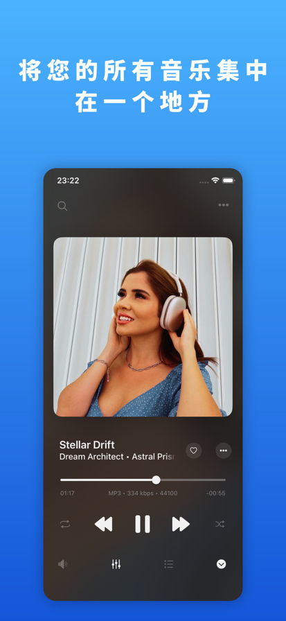 OnePlayer — 专业离线音乐播放器,让你真正拥有自己的音乐。 支持 iPhone · iPad · Apple Watch · CarPlay,一个 App 覆盖全场景。 # 适配 iOS 26 & watchOS 26 & CarPlay 26 # 2000+ 全球五星评价 # 几十万用户,遍布全球 170+ 个国家和地区 ◆ 全格式 Hi-Res 高品质播放 支持 20+ 种音频格式:MP3、FLAC、AAC、WAV、AIFF、APE、OGG、OPUS、WMA、DSD、DSF、M4A、M4R 等,完美还原无损音质。 ◆ 灵活多样的导入方式 WiFi 无线传歌 / USB 有线导入 / 文件 App 导入 / 同步 iTunes·iPod 音乐库 / WebDAV / SMB 局域网共享,无需电脑也能轻松管理音乐。 ◆ 完善的音乐库管理 自由创建无限播放列表,按文件夹、专辑、艺人智能分类。所有元数据均可编辑——封面、标题、专辑、艺人、歌词、轨道号、评分等。 ◆ AI 智能封面匹配 支持自动匹配和 AI 匹配专辑封面,让你的音乐库更加赏心悦目。 ◆ 歌词显示与编辑 支持内嵌 LRC 歌词和导入歌词文件,还可在 App 内编辑歌词。 ◆ 专业均衡器 多种预设均衡器和 10 段自定义 EQ 调节,打造你的专属音效。 ◆ 倍速播放 自定义倍速播放,听有声书、播客、学习资料更高效。 ◆ 精美桌面小组件 多款小组件样式,支持显示歌词,一键控制播放。 ◆ CarPlay 车载播放 完整 CarPlay 体验,按歌曲、播放列表、专辑、艺人、文件夹浏览与播放,驾驶途中同步显示歌词。 ◆ Siri 与快捷指令 Siri 语音播放歌曲、艺人或播放列表。搭配「快捷指令」实现自动化,如连接 CarPlay 时自动播放音乐。 【网络与 NAS 音乐访问】 不止本地音乐——还能连接你的网络存储,畅享海量曲库。 ◆ SMB 局域网共享 连接 NAS(Synology、QNAP 等)或电脑共享文件夹,直接浏览、在线播放或批量下载音乐到手机。 ◆ WebDAV 服务器 连接 WebDAV 服务器(Nextcloud、ownCloud 等),浏览文件、在线播放、批量下载,支持 HTTP 和 HTTPS。 【Apple Watch 独立播放】 将音乐导入手表,脱离 iPhone 独立播放——跑步、健身、通勤,音乐随腕而行。 · 支持手表扬声器外放,不带耳机也能听 · 完整曲库管理:歌曲、播放列表、专辑、艺人 · 有声书模式:记录播放进度,快进/回退,下次继续收听 · 倍速播放、睡眠定时器 · CoverFlow 封面流浏览,旋转数码表冠沉浸式体验 · 手表直连 WebDAV,无需手机中转,直接下载歌曲到手表 · 批量操作、搜索、创建歌单,功能完整不缩水 · 最低支持 watchOS 8 在流媒体盛行的今天,依然有无数音乐爱好者坚持本地音乐。OnePlayer 致力于成为最佳的本地音乐播放器,让你随时随地享受真正属于自己的音乐。 * 部分功能需要更新到最新操作系统 * OnePlayer 不提供任何音频/视频流或下载服务,它是一款纯粹的本地播放工具,用于播放用户自行导入的音频。 联系我们 反馈邮箱:oneplayer_app@outlook.com 隐私协议:https://www.yuque.com/lijuncode/oneplayer/lazqv7 使用协议:https://www.yuque.com/lijuncode/oneplayer/mgugta