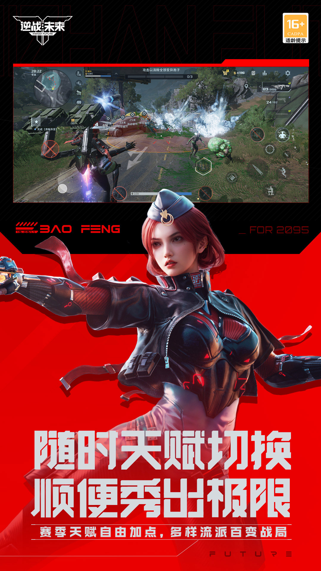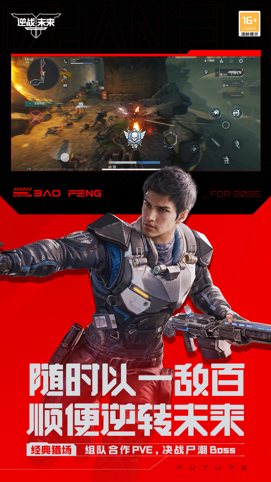 《逆战:未来》是国产自研FPS端游《逆战》的革新续作,含PC及移动端版本。游戏采用赛季制设计,每个赛季围绕一个主题定制各种玩法模式、赛季天赋与技能,带来不同的流派及战斗体验。游戏包含多种玩法模式,涵盖PVE猎场、塔防、机甲PVP等经典玩法,以及大地图PVE时空追猎、PVEVP猎场竞速等创新玩法。 游戏的商业化设计亦有革新。以外观售卖为主,不卖强度数值。所有原型枪械均可通过游戏行为获取,其余提供数值的内容包括赛季天赋及武器插件,均通过活跃获取,以确保数值可控。 游戏已定档2026年1月上线,欢迎各位玩家前来与好友并肩作战,挑战危机重重的副本,横扫战场、决战BOSS强敌,体验畅快的射击战斗。